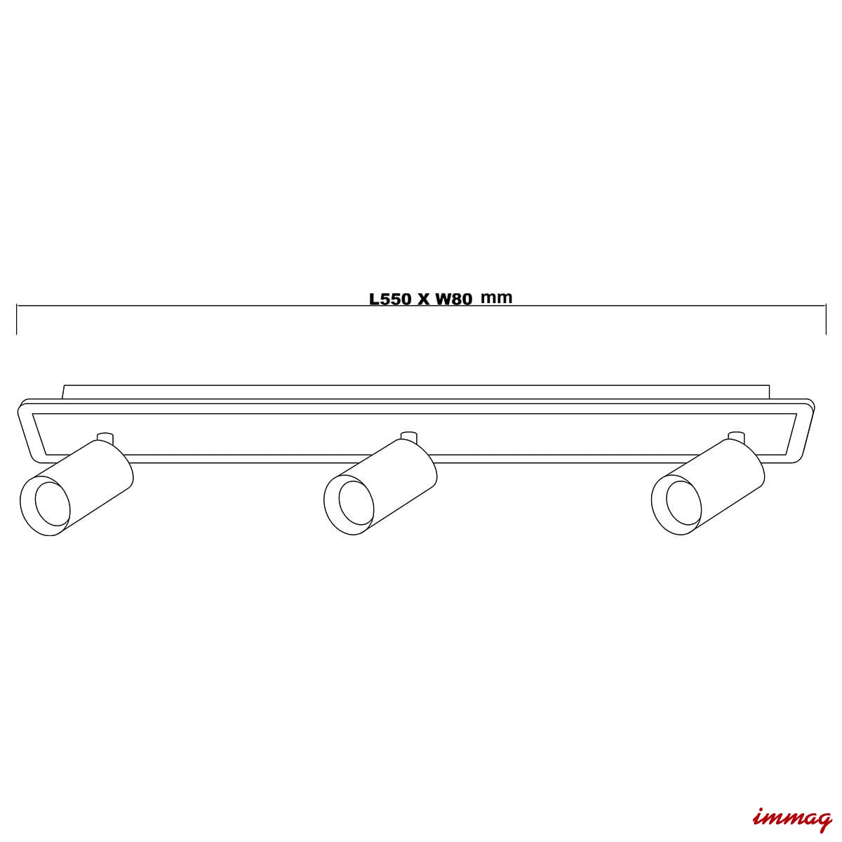 Wymiary: Szerokość spotu wynosi 55 cm (patrz rysunek techniczny).
