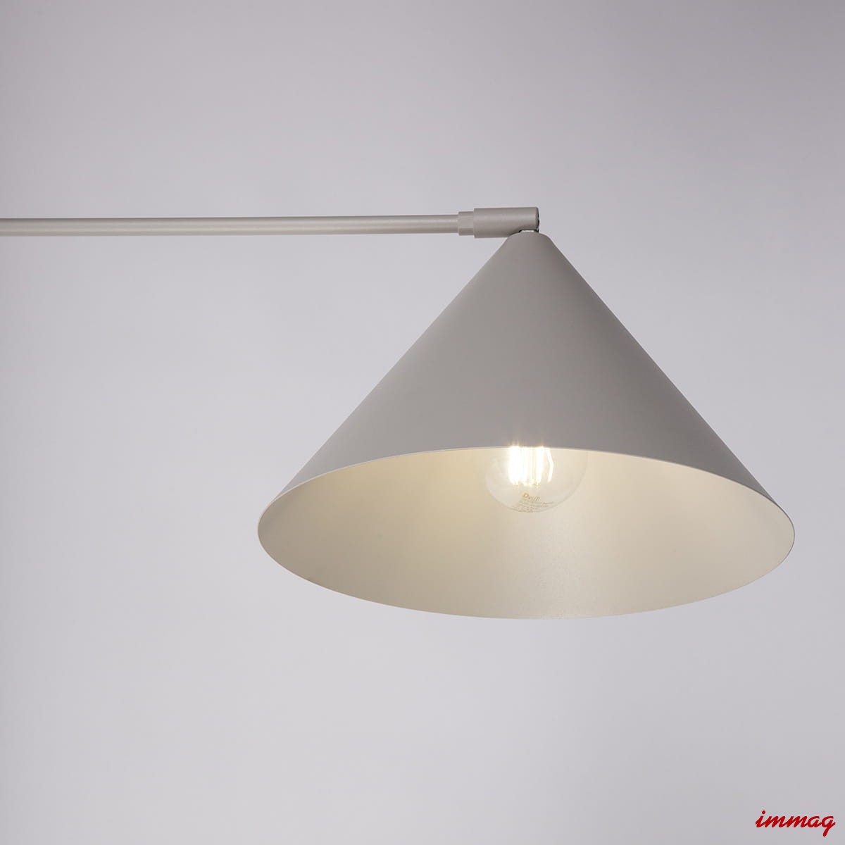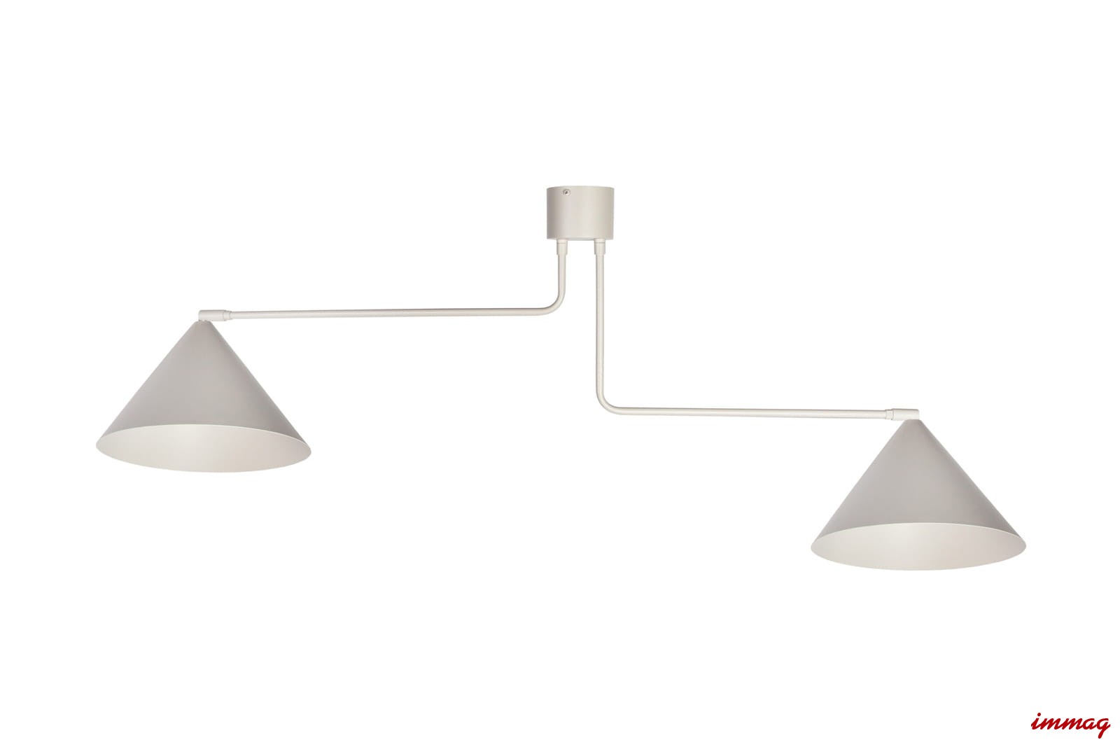 Lampa sufitowa podwójna MAGIC posiada dwa, różnej długości, ruchome ramiona, co pozwala na dowolne ustawienie kierunków padania światła. Zwiększa to wszechstronność i użyteczność lampy. Na końcu tego ramienia znajduje się klosz w kształcie stożka, który nadają lampie minimalistyczny i stylowy wygląd. Klosz jest również ruchomy, umożliwiając precyzyjne skierowanie światła tam, gdzie jest potrzebne.