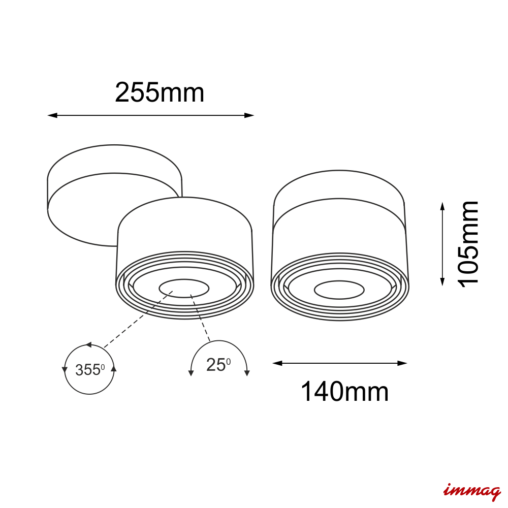 Wymiary całkowite (średnica/wys.): 140-255x105 mm