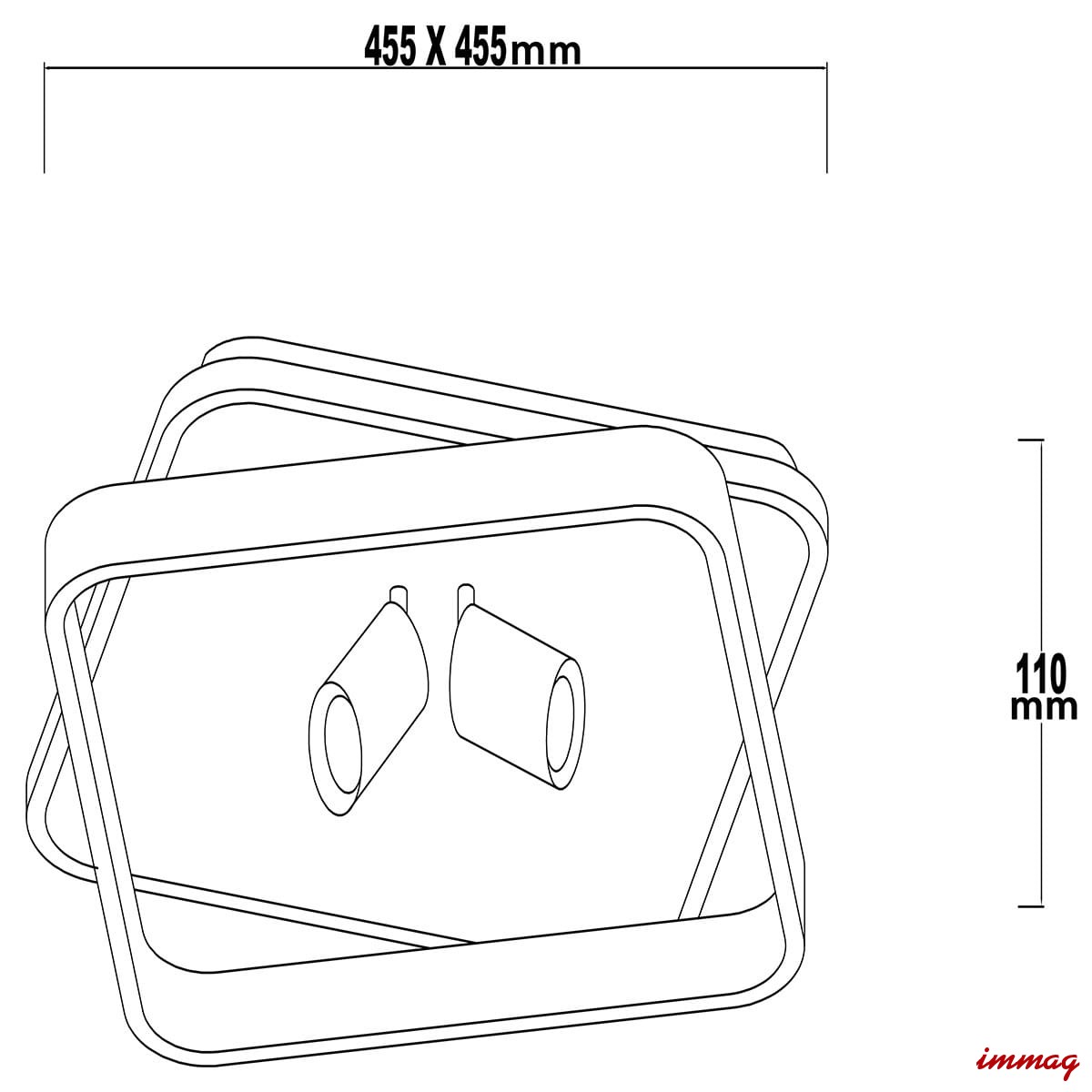 Plafon Parma 2 został wykonany z metalu oraz akrylu. Posiada dwa ruchome reflektorki z wymiennymi obręczami, do wyboru mamy czarne lub złote obręcze (obie wersje znajdują się w zestawie). Regulacja kąta nachylenia reflektorków sprawia, że można ustawić kierunek padania światła dokładnie w wymaganym kierunku, np. na biurko. Plafon posiada miejsce na żarówki o gwincie GU10 oraz wbudowane światło LED o zmiennej barwie światła CCT, co oznacza że można ustawić dowolną barwę światła LED od ciepłej poprzez neutralną, aż po zimną. Barwę światła ustawia się przed montażem w podsufitce lampy.