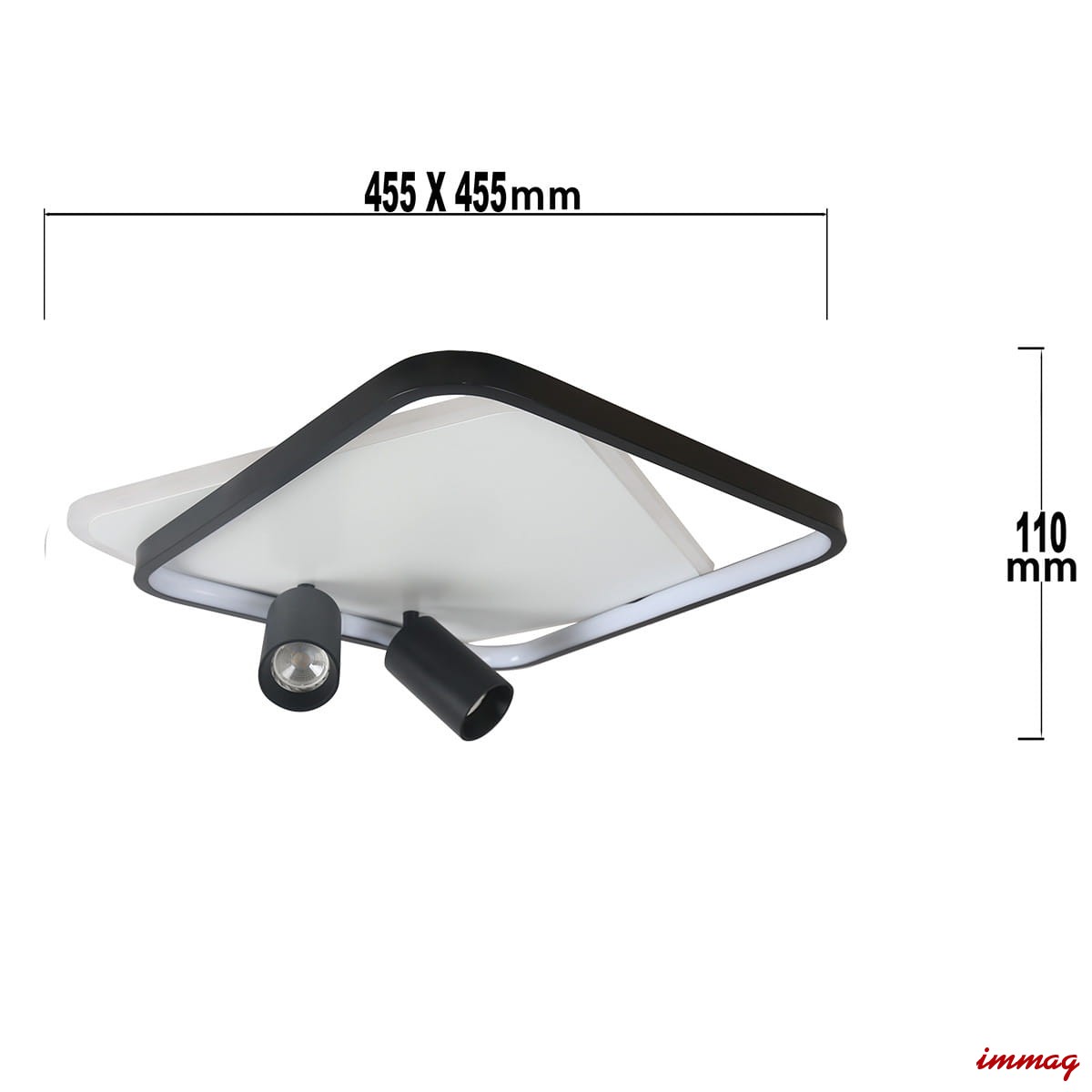 Lampa sufitowa Plafon Parma 2 2xGU10 + 1xLED CCT kwadrat czarny LP-0612/2C Square BK