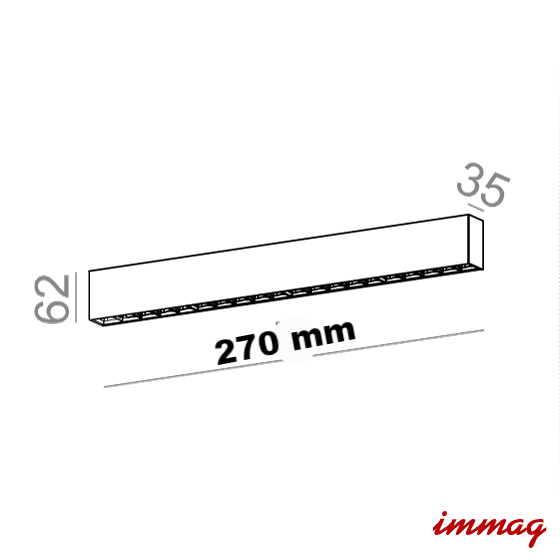 Wymiary : szerokość 35 mm długość 270 mm wysokość 62 mm.
