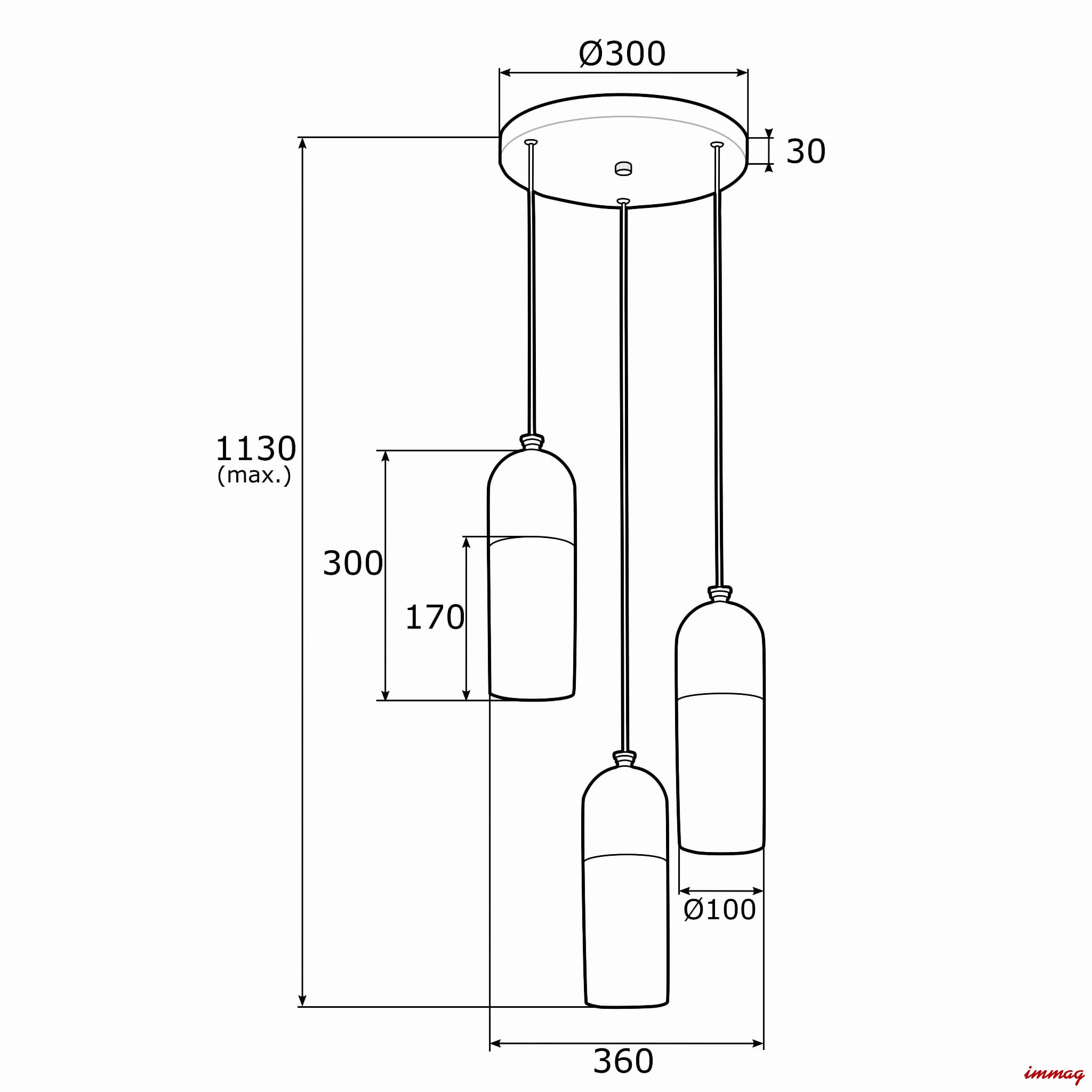 Źródło światła: 3 X led E27 230V max.15W