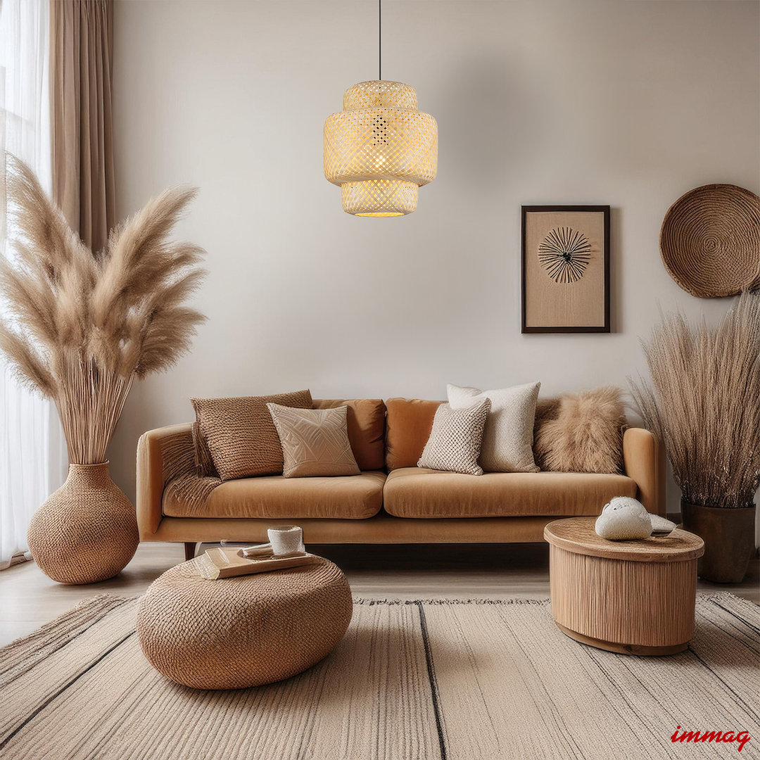 Lampa wisząca HESTIA to wyjątkowe oświetlenie, które zachwyca swoim unikalnym, warstwowym kształtem i naturalnym wykończeniem. Wykonany z plecionego materiału klosz wprowadza do wnętrza ciepło i przytulność, a jednocześnie stanowi wyrazisty element dekoracyjny. Inspiracja naturą i rękodziełem sprawia, że HESTIA doskonale pasuje do wnętrz w stylu boho, skandynawskim czy rustykalnym. Jej forma przyciąga wzrok, a rozproszone światło tworzy wyjątkowy nastrój, który podkreśla indywidualny charakter przestrzeni.