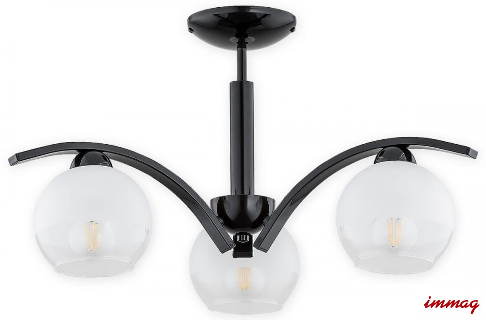 Lampa wisząca Leo żyrandol 3 pł. - czarny połysk - klosz biały mrożony + przezroczysty O2523 W3 CZA LEMIR