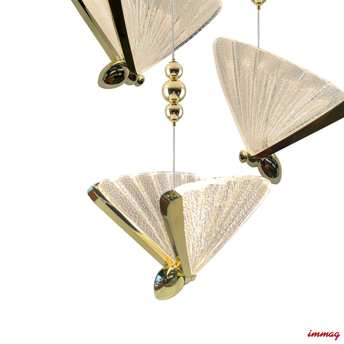 Lampa wisząca Mariposa to nie tylko oświetlenie, to przede wszystkim piękny i wysmakowany element dekoracyjny każdego pomieszczenia w którym się znajdzie. Lampa wisząca Mariposa posiada światło LED umieszczone w motylich skrzydłach. Wbudowane oświetlenie LED posiada zmienną barwę światła (CCT - Correlated Color Temperature). Dzięki technologii CCT można wybrać barwę światła pomiędzy ciepłą, neutralną, a zimną. Pozwala to na dopasowanie koloru oświetlenia do własnych preferencji bądź nastroju. Zmianę barwy światła ustawia się przed montażem w podsufitce. Lampa została wykonana z akrylu i metalu. Takie zestawienie materiałów jest niezwykle eleganckie. Lampa ta doskonale odnajdzie się w stylu glamour. Lampy w stylu glamour są teraz modnym, poszukiwanym elementem wystroju wnętrz. Złota lampa wisząca Mariposa została wykonana z dbałością o detale, dlatego jej wykonanie powinno zadowolić najbardziej wymagajacego użytkownika.