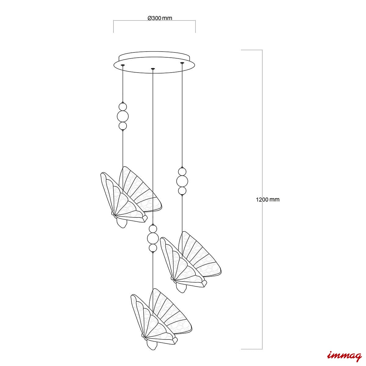 Lampa wisząca Mariposa 3xLED motyle w salonie CCT LP-1715/3P