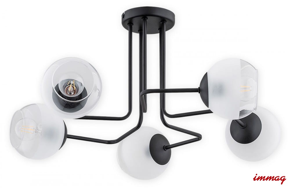 Lampa wisząca Pinox żyrandol 5 pł. - czarny matowy - klosz biały mrożony + przezroczystyO3085 W5 CZA LEMIR