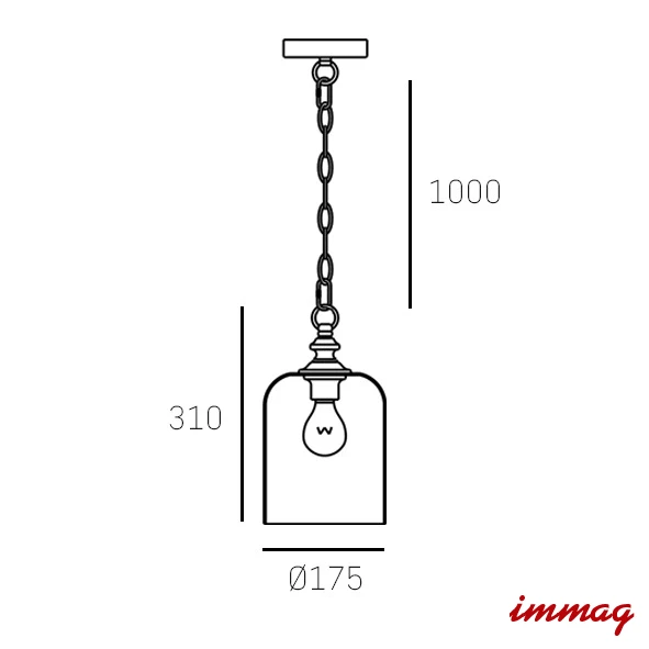 Wymiary: wysokość 31 cm , średnica 17 cm , min. zwis 40 cm , max. zwis 135 cm