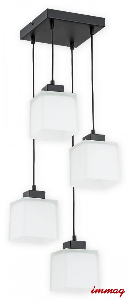 Lampa wisząca Teru zwis na kwadracie 4 pł. / czarny matowy + biały półprzezroczysty O2975 W4 CZA + BIA