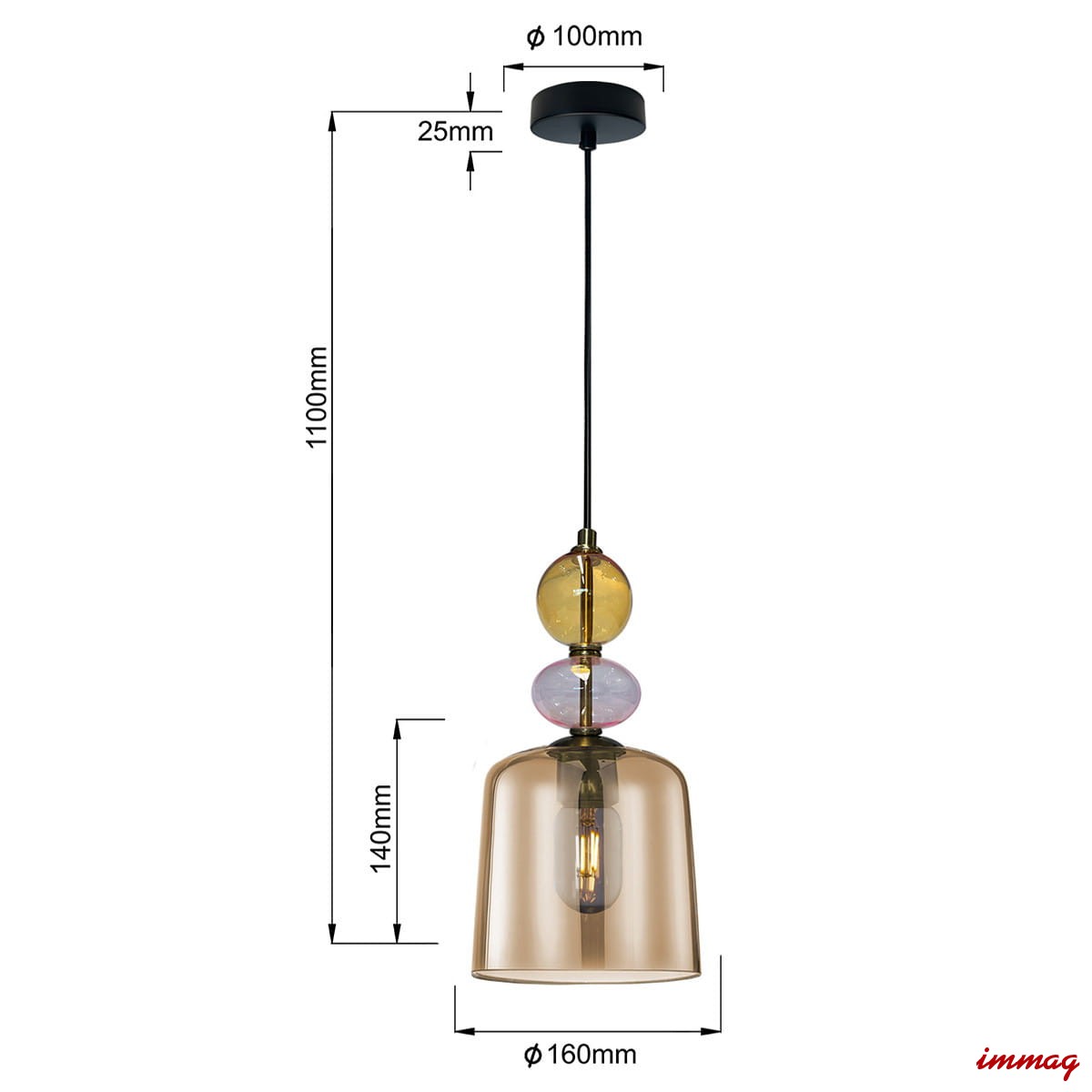 Wymiary : wysokość 110 cm szerokość 20 cm głębokość 16 cm klosz o średnicy 16 cm