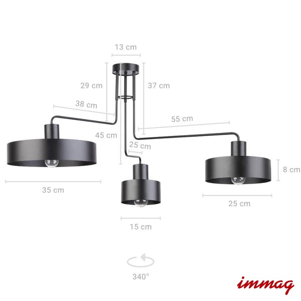Lampa wisząca Vasco 3 czarny 31553 lampa sufitowa czarna Sigma