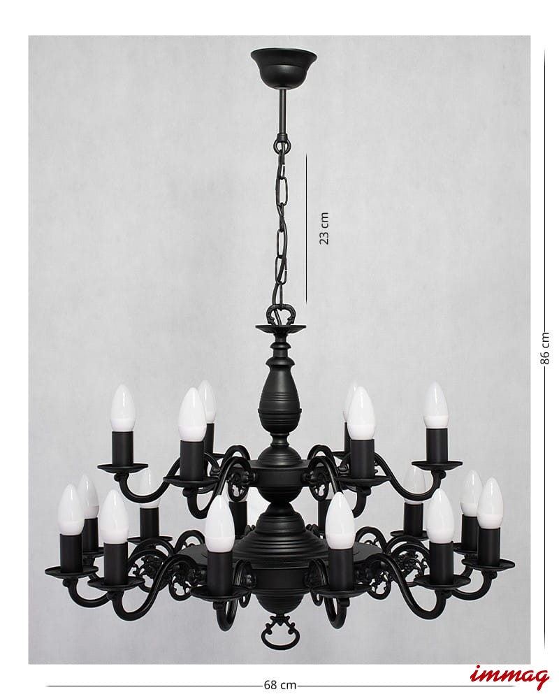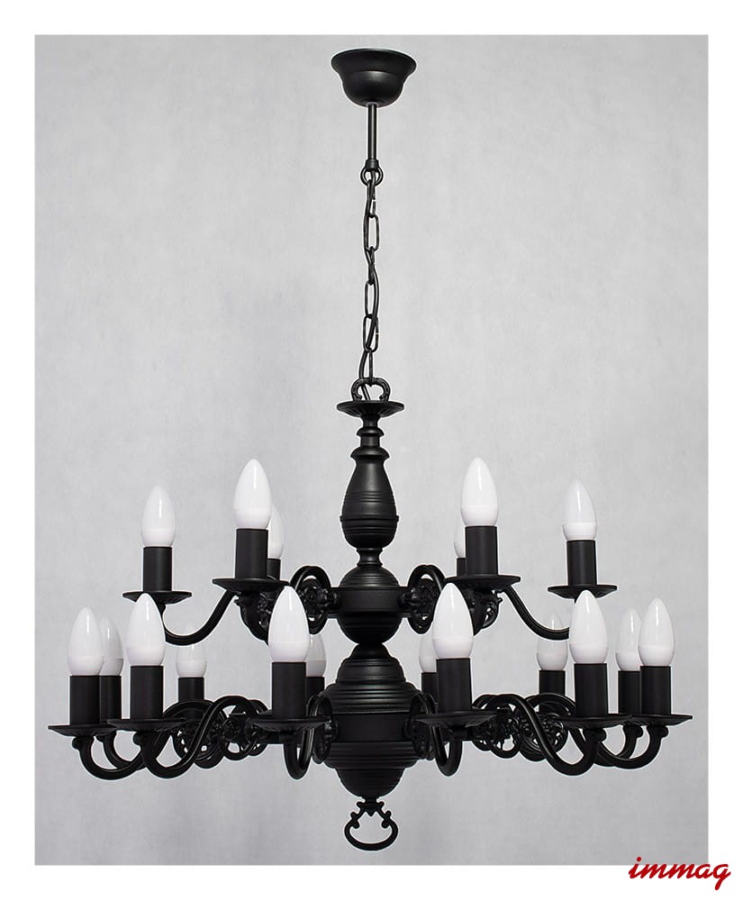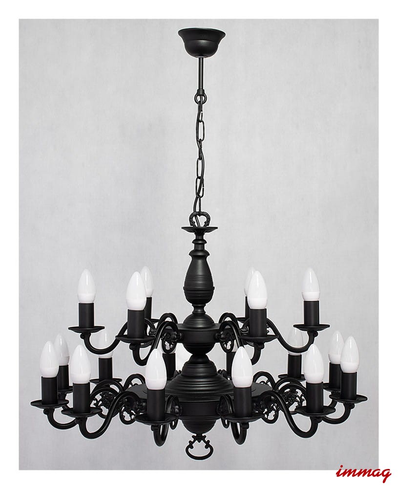 Lampa wisząca Ventuno żyrandol świecznikowy 2-piętrowy 18-punktowy, czarny matowy O3326 P2 W18 CZA LEMIR