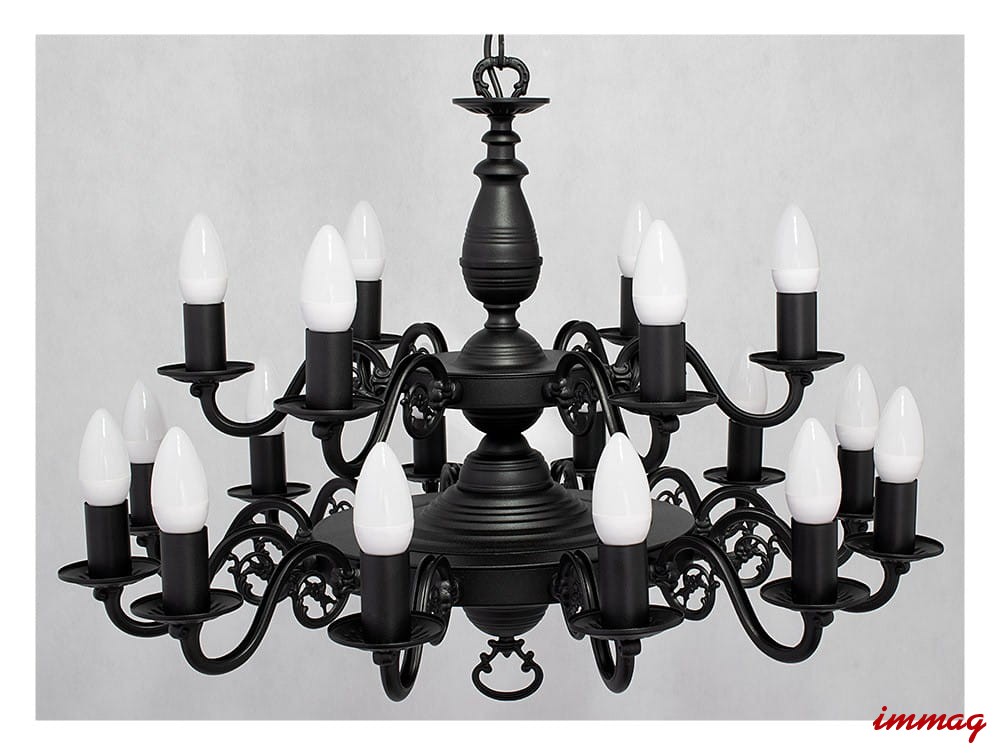 - 3-poziomowy Ventuno: największy żyrandol z całej serii, przeznaczony na 21 żarówek płomykowych.