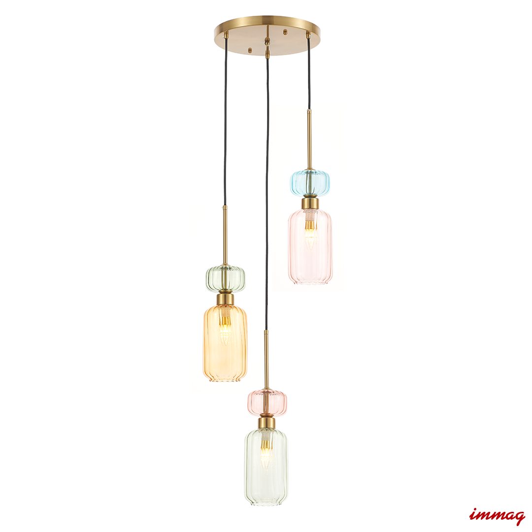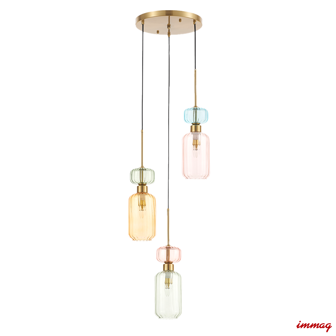 Lampa wisząca MOLLY to wyjątkowe połączenie harmonii kolorów i eleganckiej formy. Trzy szklane klosze w subtelnych odcieniach różu, bursztynu i zieleni, uzupełnione złotymi wykończeniami, tworzą spójną kompozycję, która wnosi do wnętrza świeżość i artystyczny charakter. Jej designerska konstrukcja sprawia, że jest idealnym wyborem dla osób, które poszukują nietuzinkowego oświetlenia, które jednocześnie stanowi dekoracyjny element wnętrza. Klosze rozmieszczone na różnych wysokościach dodają lampie dynamiki i przyciągają uwagę, tworząc ciepły i przytulny nastrój. Wykonana z najwyższej jakości materiałów, MOLLY gwarantuje trwałość i precyzyjne wykończenie każdego detalu. Złota podsufitka dodaje całości elegancji, a możliwość regulacji wysokości pozwala na idealne dopasowanie lampy do Twojej przestrzeni.