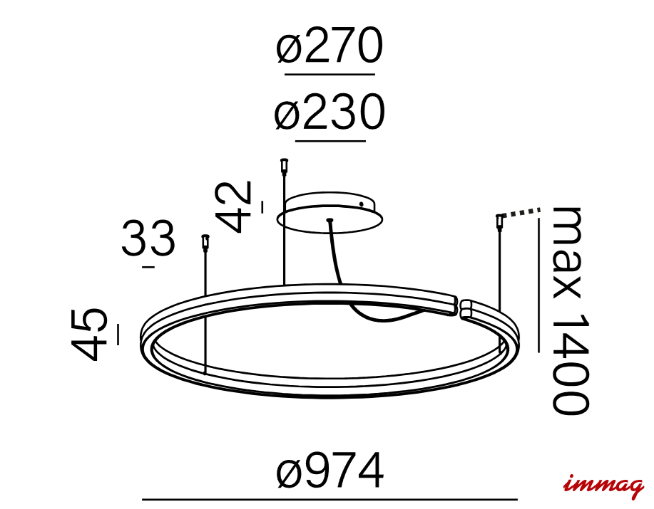 Wymiary : szerokość/średnica 974 mm wysokość 1400 mm