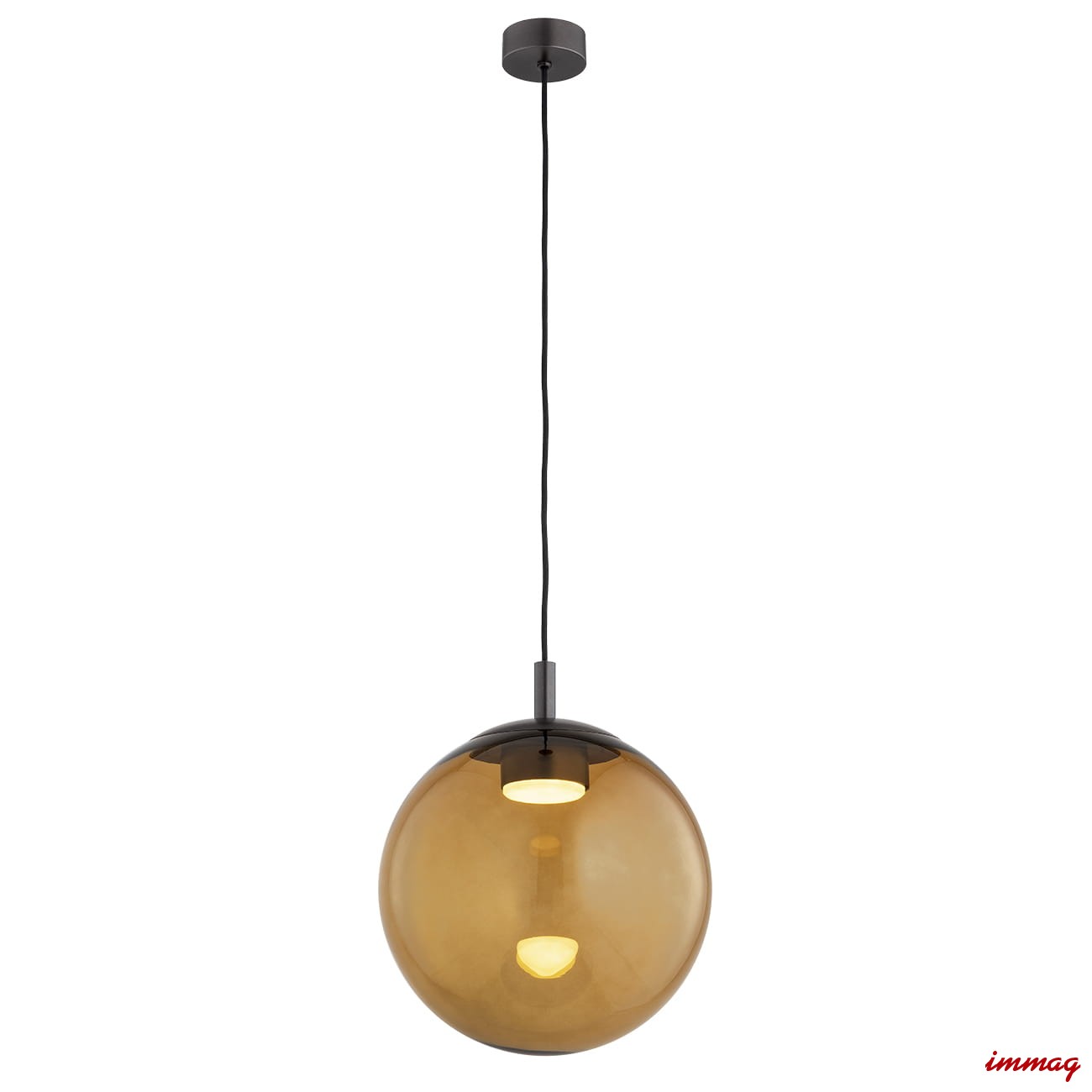 Lampa wisząca duża kula szklany klosz bursztynowy przezroczysty kolor akcenty stal z efektem szczotkowanego tytanu SACRAMENTO 8831