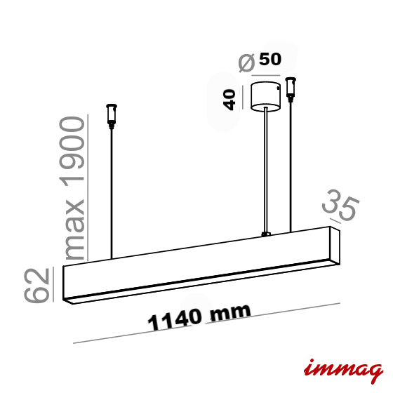 Wymiary : długość 1140 mm szerokość 35 mm wysokość 1900 mm