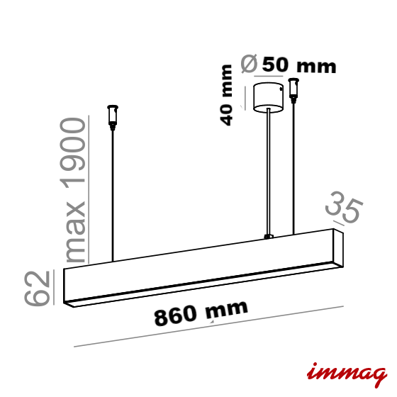 Wymiary: długość 860 mm szerokość 35 mm wysokość max. 1900 mm