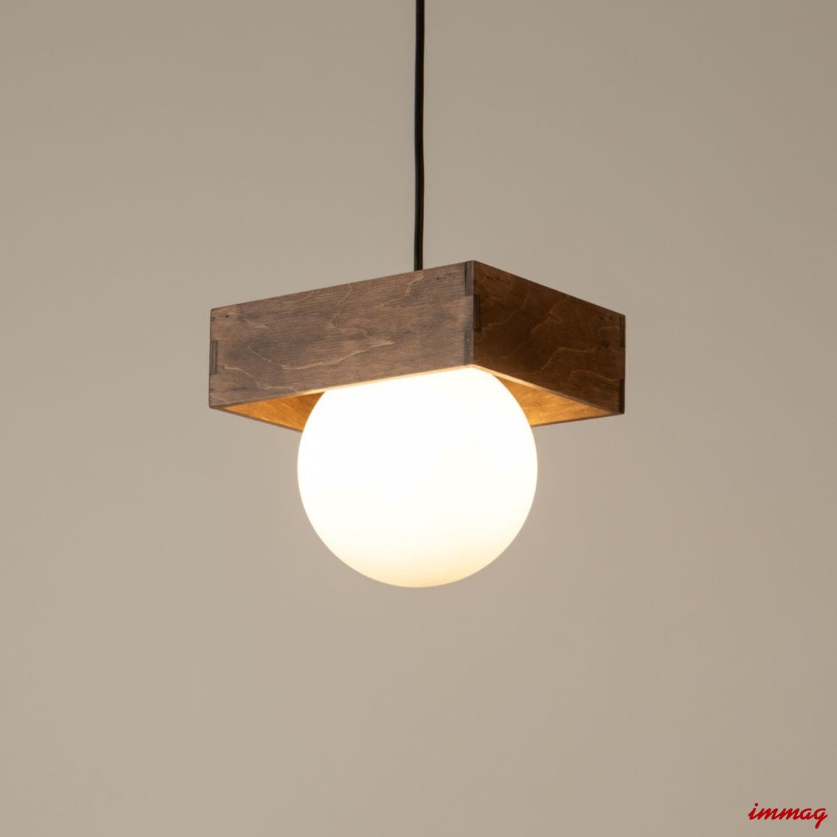 Lampa wisząca mleczna kulka ze sklejką Bloom 1 33663