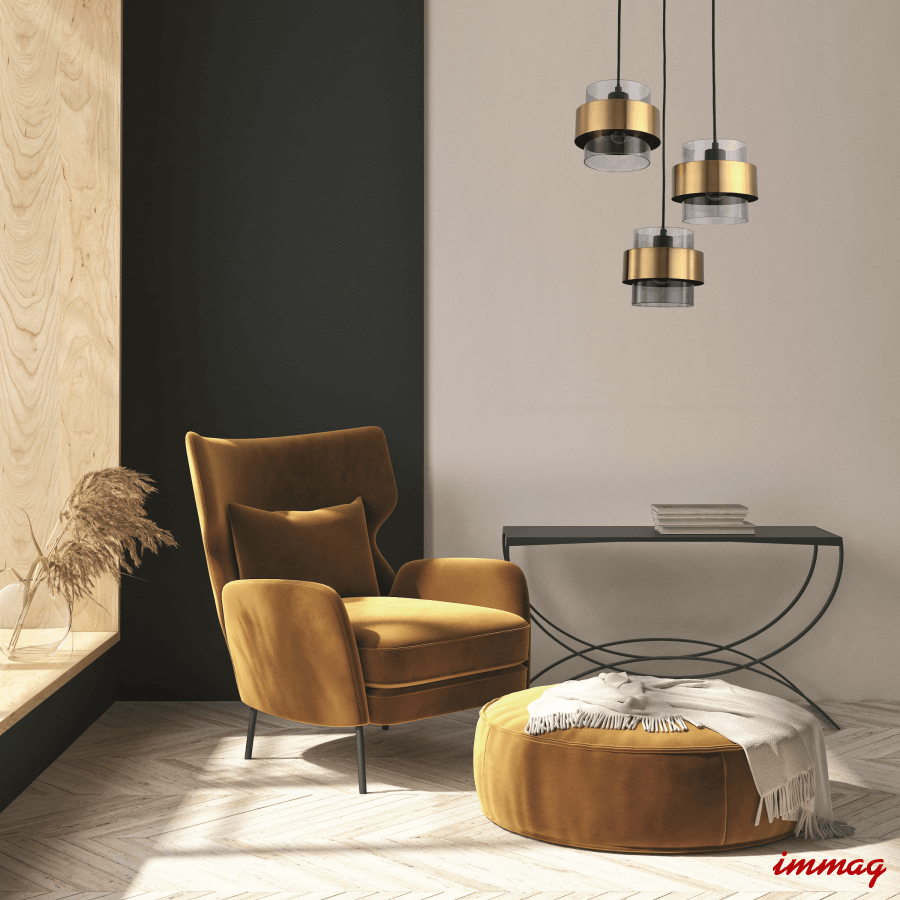 Lampa wisząca na 1 żarówkę dymiony klosz Miele LP-866/1P SM/GD