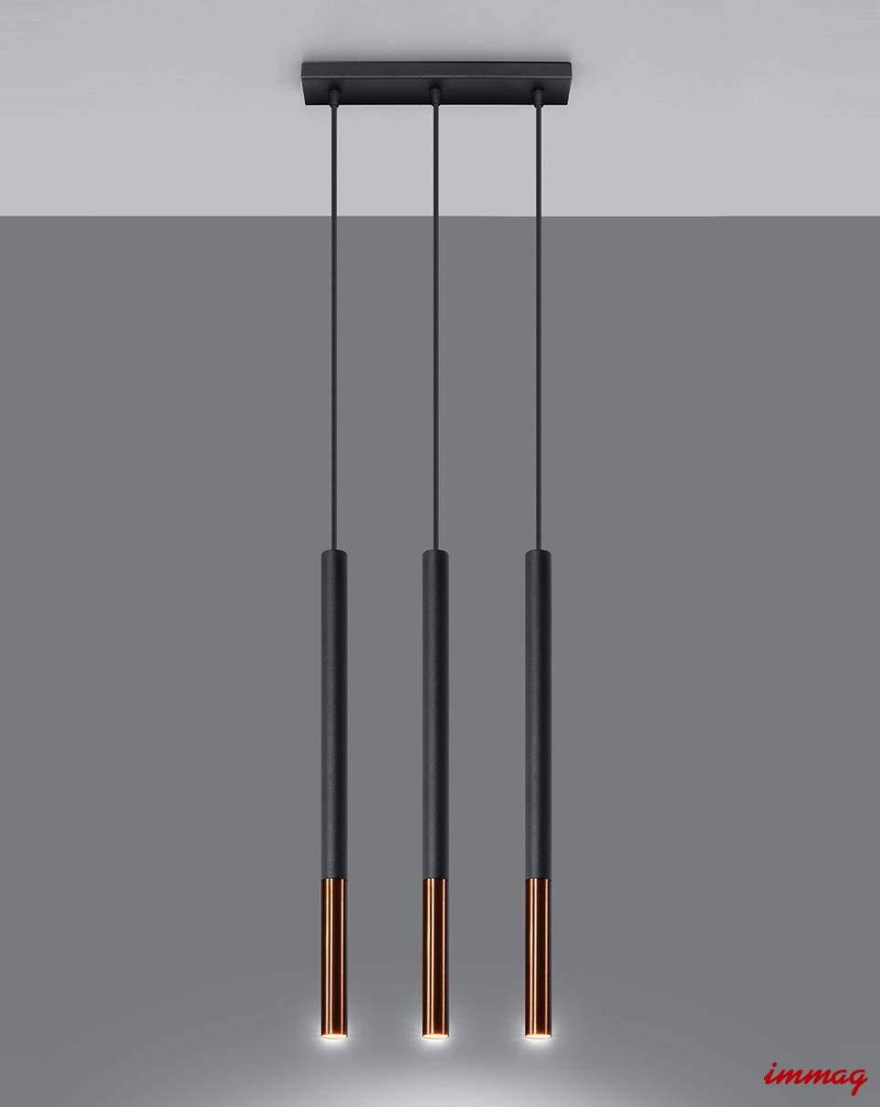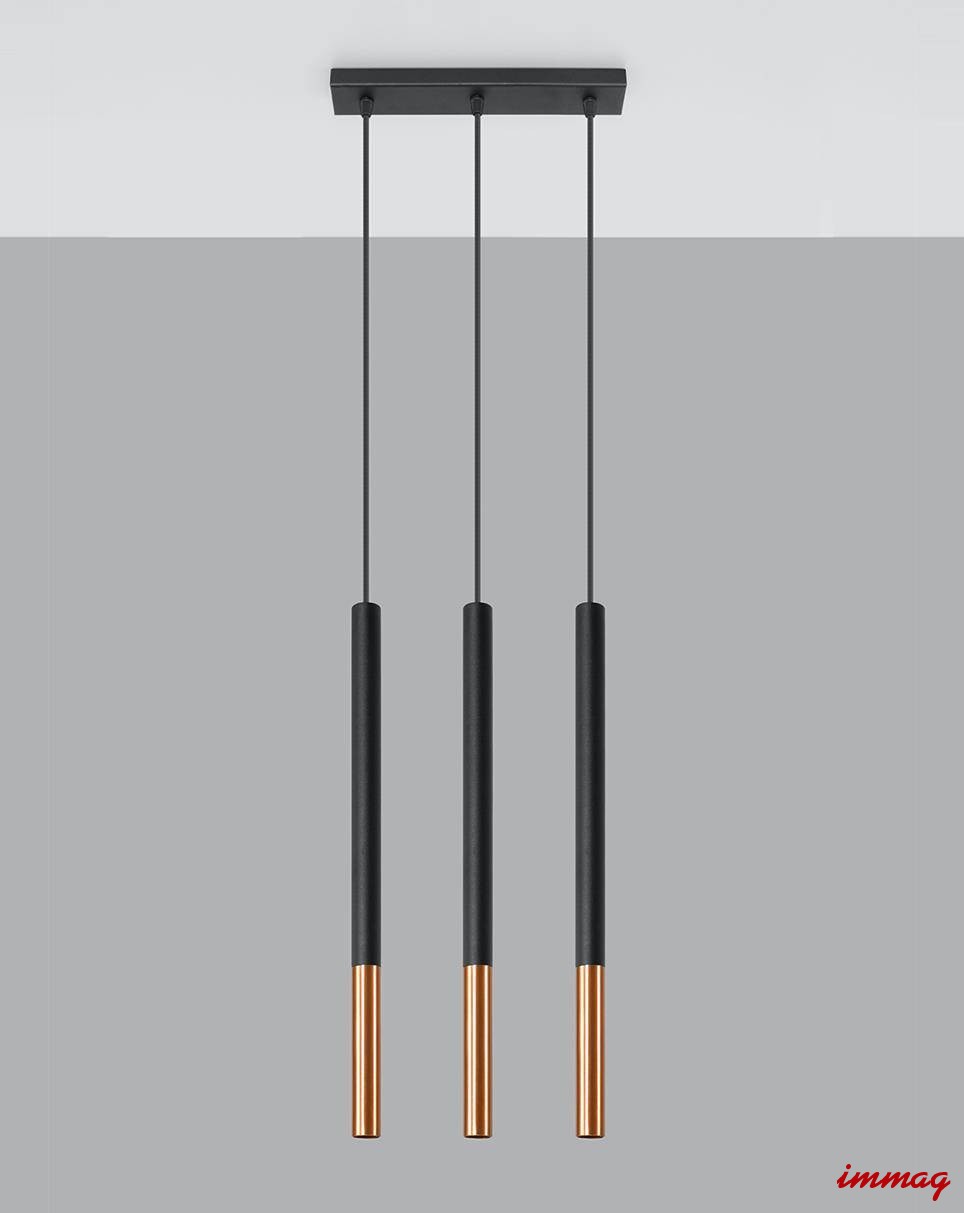 Lampa wisząca na listwie 3 żarówki Mozaica 3L czarny/miedź SL.0889