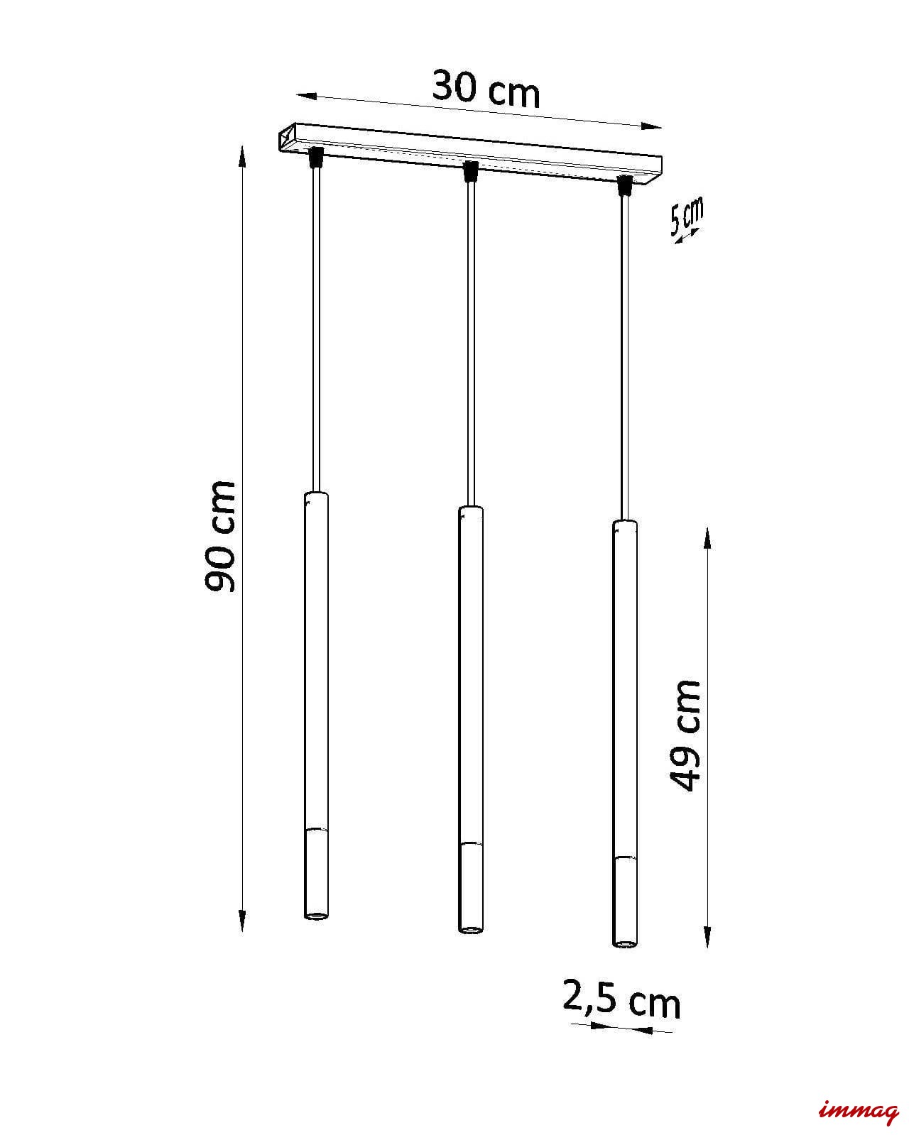 Wymiary: wysokość lampy 90cm , średnica klosza 2,5 cm , wysokość klosza 49cm, podsufitka 30/5 cm