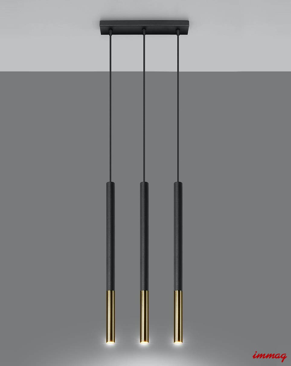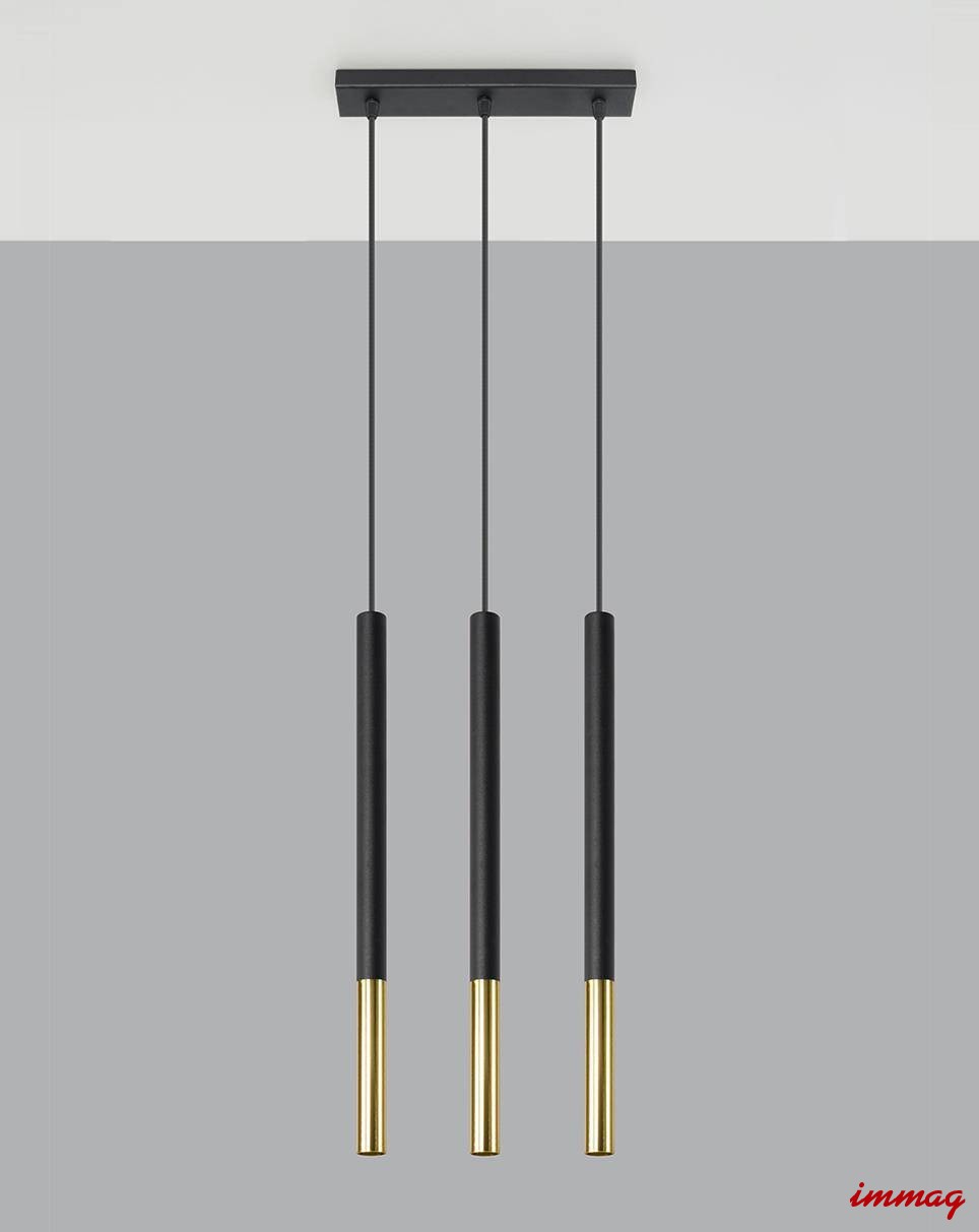 Lampa wisząca na listwie 3 żarówki Mozaica 3L czarny/złoty SL.0892