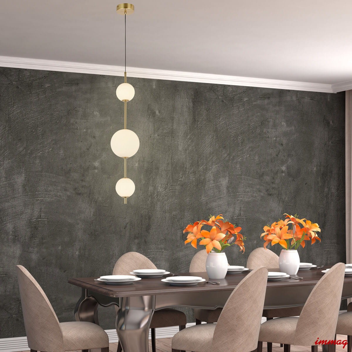 Lampa wisząca pionowa mleczne kule Dorado złota LP-002/3V
