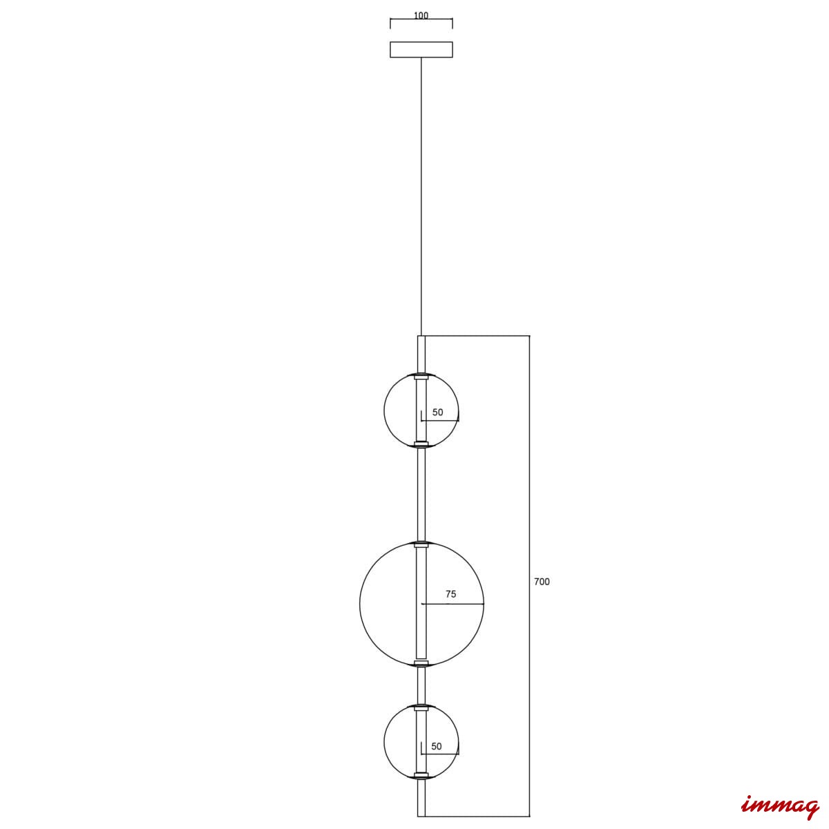 Wymiary : wysokość 150 cm , szerokość 15 cm , głębokość 15 cm , 2 klosze o średnicy 5 cm , 1 klosz o średnicy 7 cm