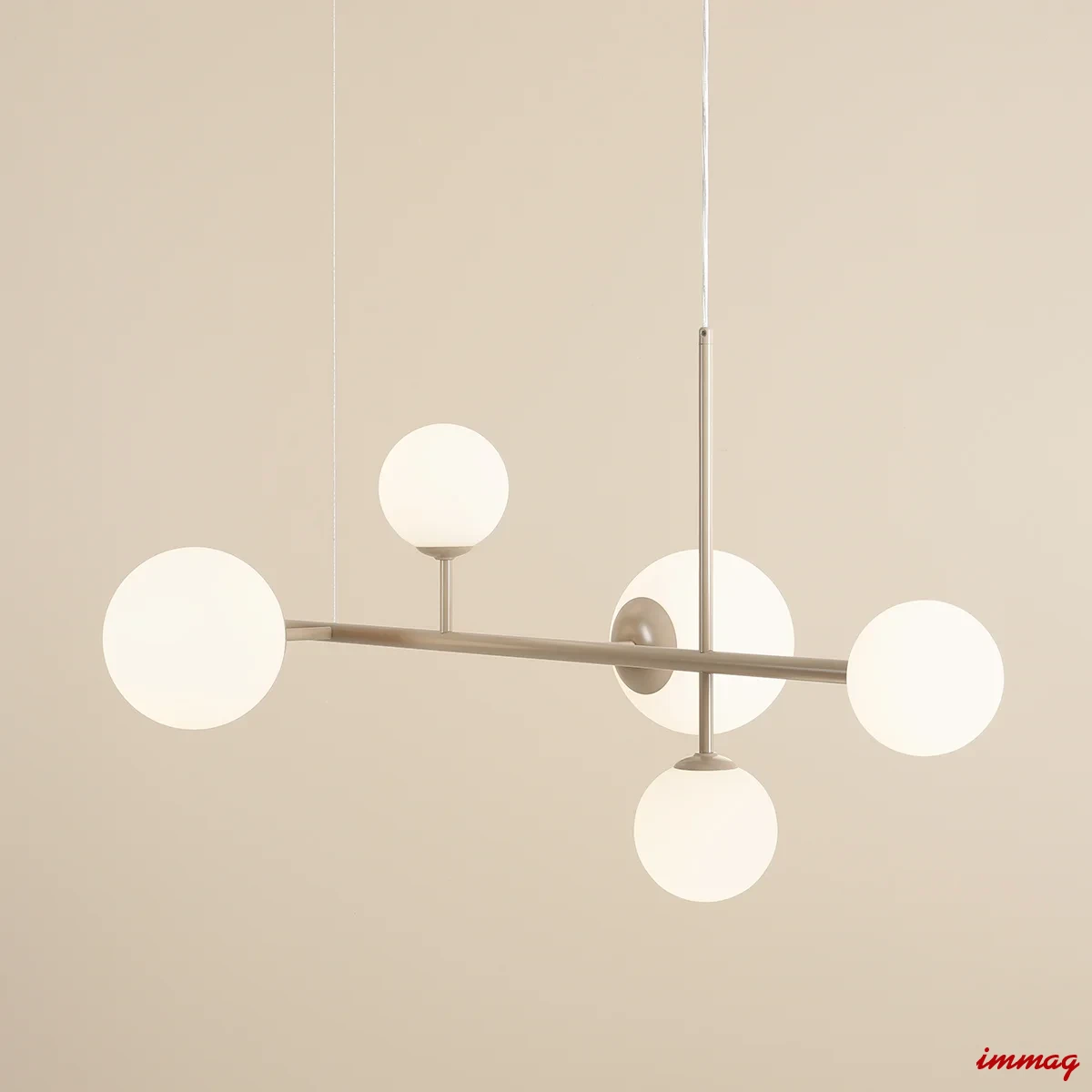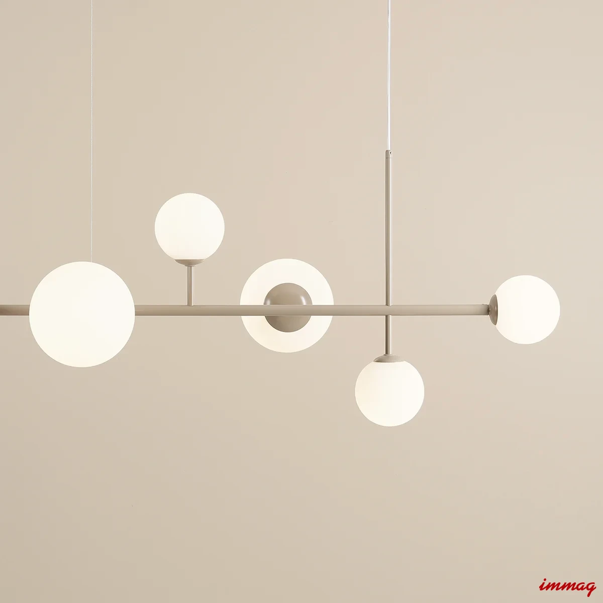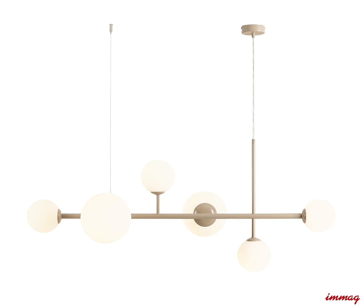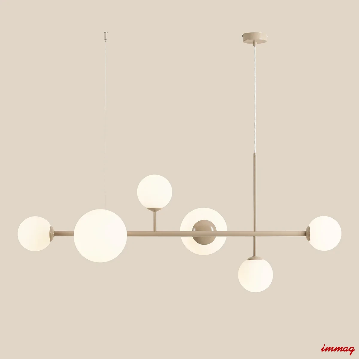 Dione 6 Beige to nowoczesna lampa wisząca tworząca wyjątkową atmosferę w pomieszczeniu. Delikatny, piaskowy odcień przyjemnie wpisze oprawę we wnętrza urządzone w klimacie skandynawskim. Lampa szeroka na 130cm, z regulacją wysokości, pięknie zaprezentuje się w centralnym miejscu pomieszczenia, nad stołem w salonie lub jadalni.