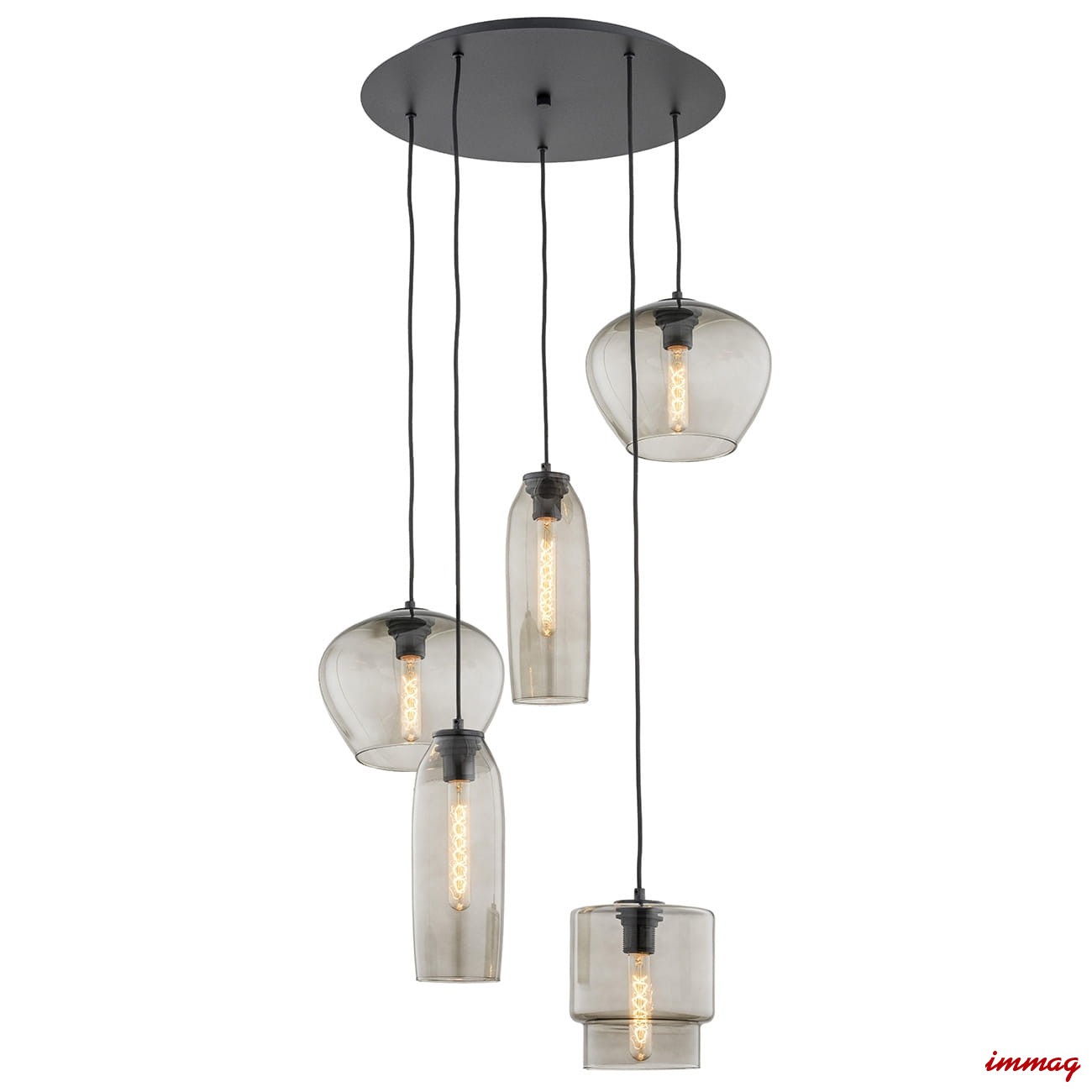 Lampa wisząca żyrandol kaskadowy szklane klosze dymne różne kształty SERAFINO 2080