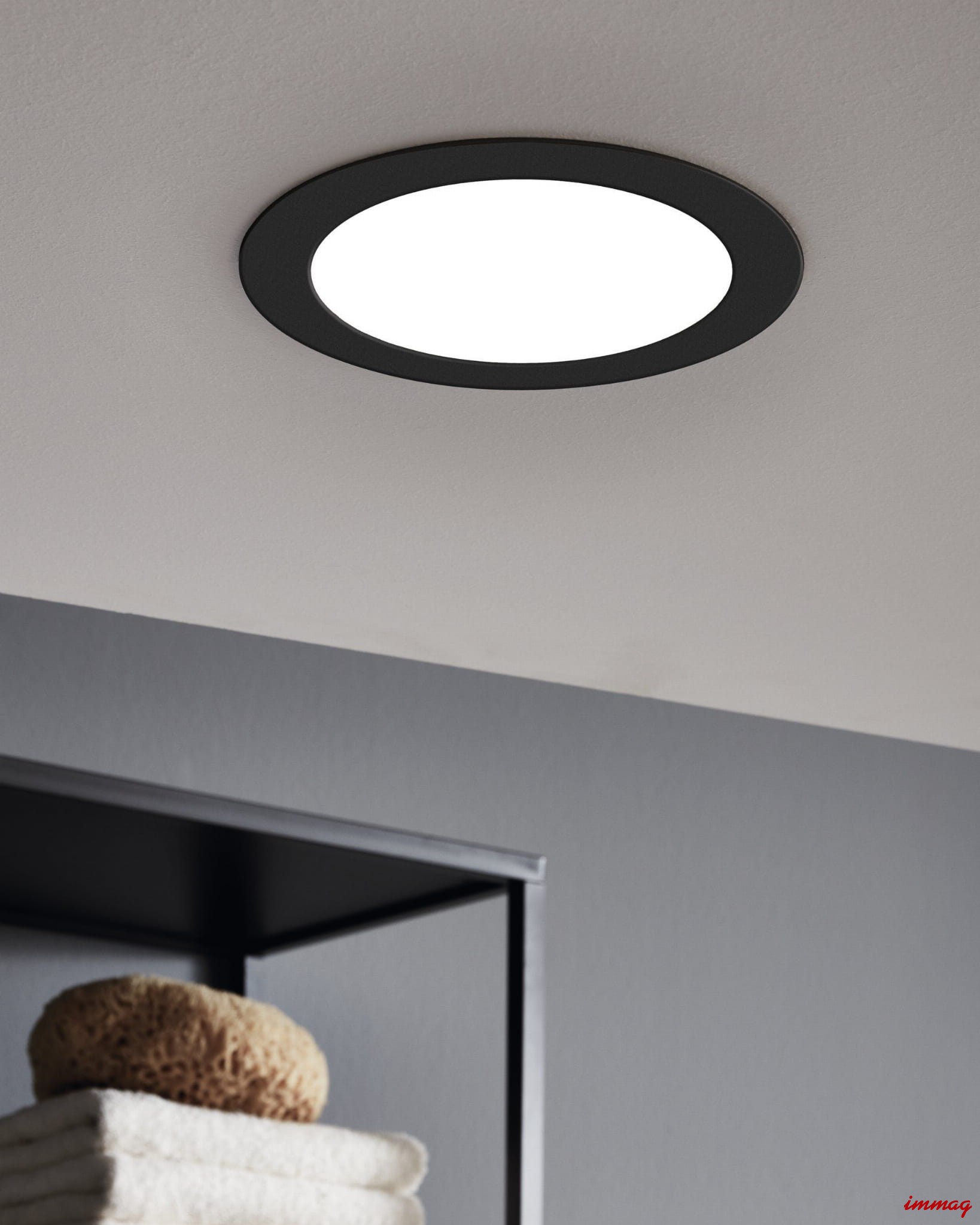 Oprawa wpuszczana, do zabudowy z serii Fueva 5. Obudowa wykonana ze stali w kolorze czarnym. Klosz osłaniający moduł LED wykonany jest białego tworzywa sztucznego, który równomiernie rozprasza światło. Lampa świeci pełną płaszczyzną. Barwa światła ciepło biała - 3000K.