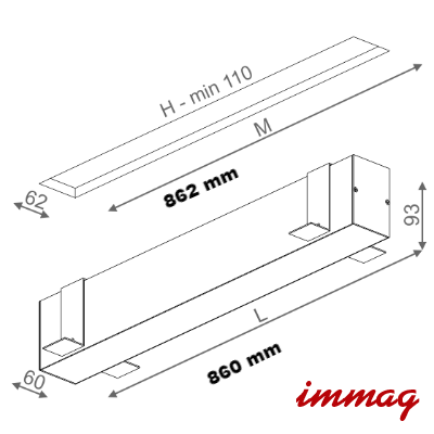 Wymiary montażowe (dł./szer./gł.): 862x62x110 mm
