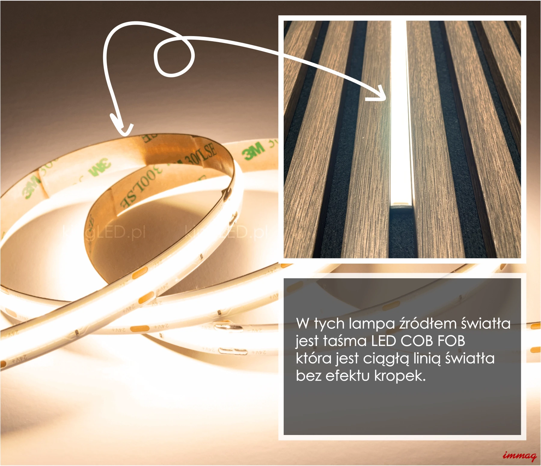 - Źródło światła: Taśma COB FOB LED IP33 CRI>90 24V