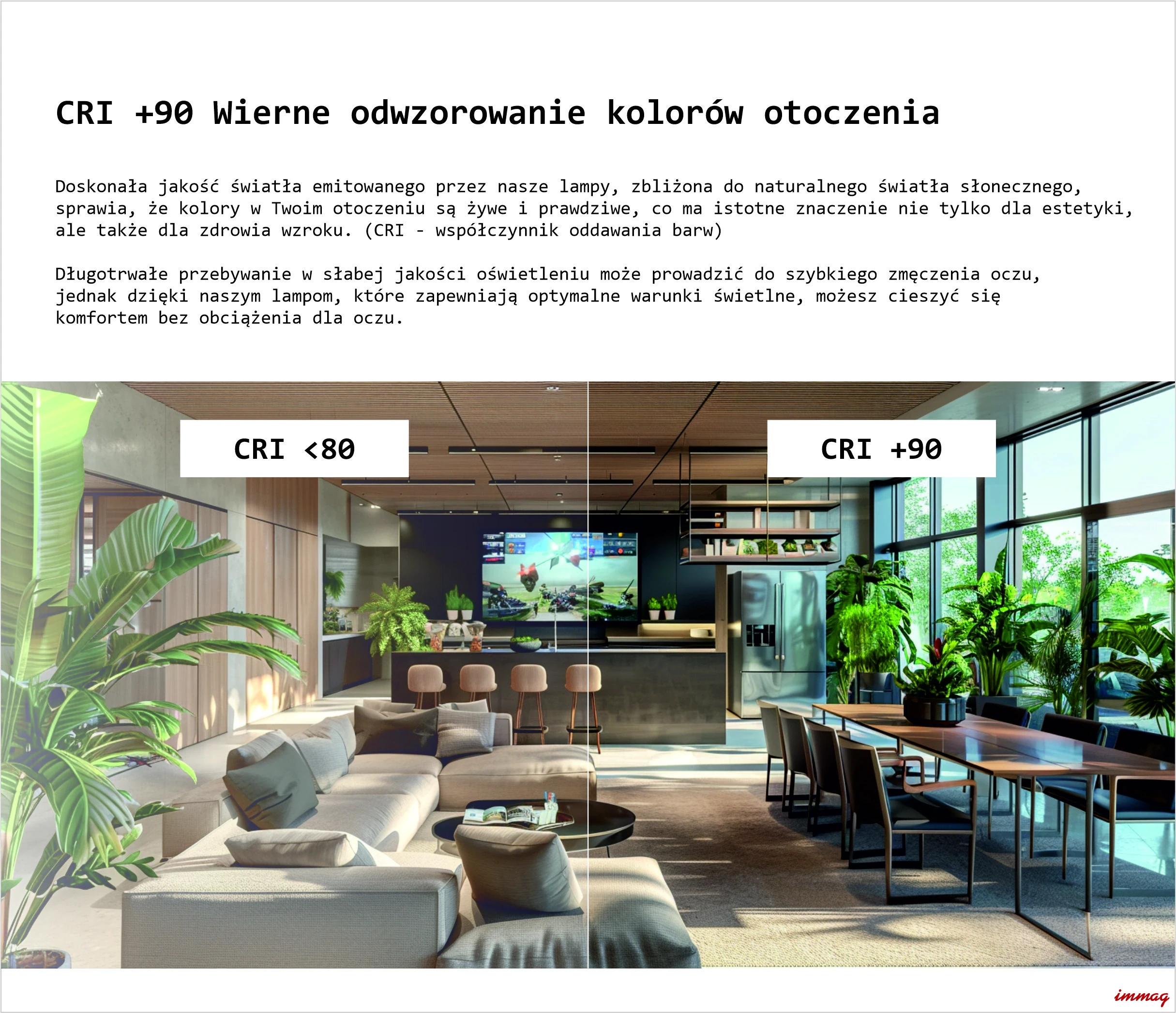 - Wskaźnik oddawanIa barw: CRI (RA) ≥ 90