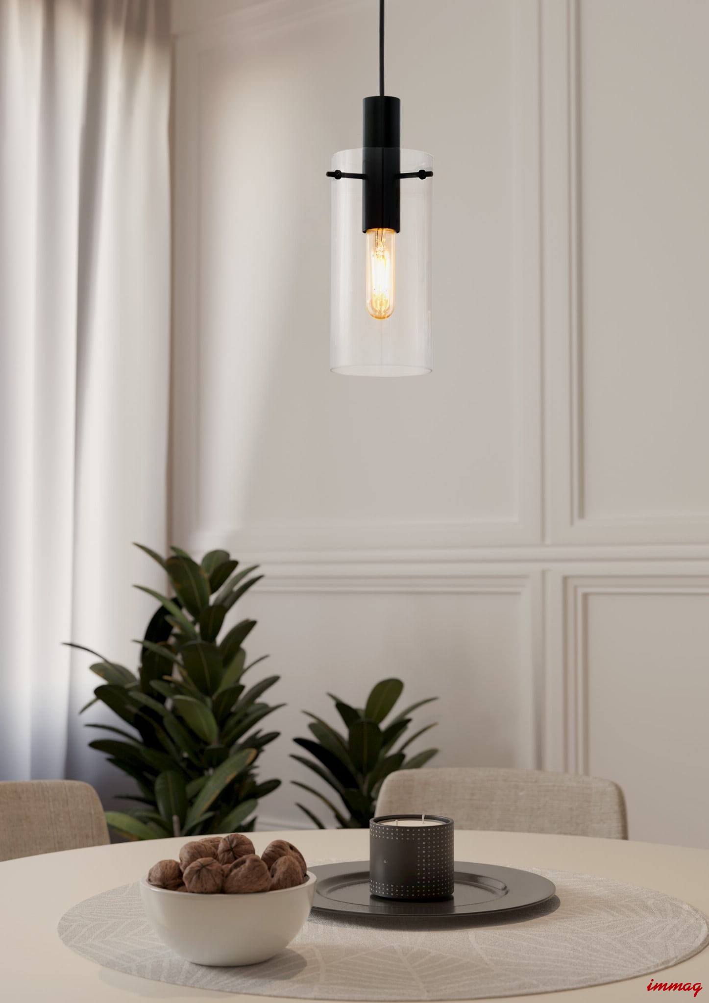 Montefino to seria nowoczesnych, subtelnych lamp wiszących. Swą prostotę zawdzięczają połączeniu eleganckiej czerni z delikatnością przeźroczystego szkła, które pięknie prezentuje się w tej surowej formie. Elementem ozdobnym Montefino są dekoracyjne źródła światła, których rodzaj i kształt to indywidualna decyzja każdego klienta.