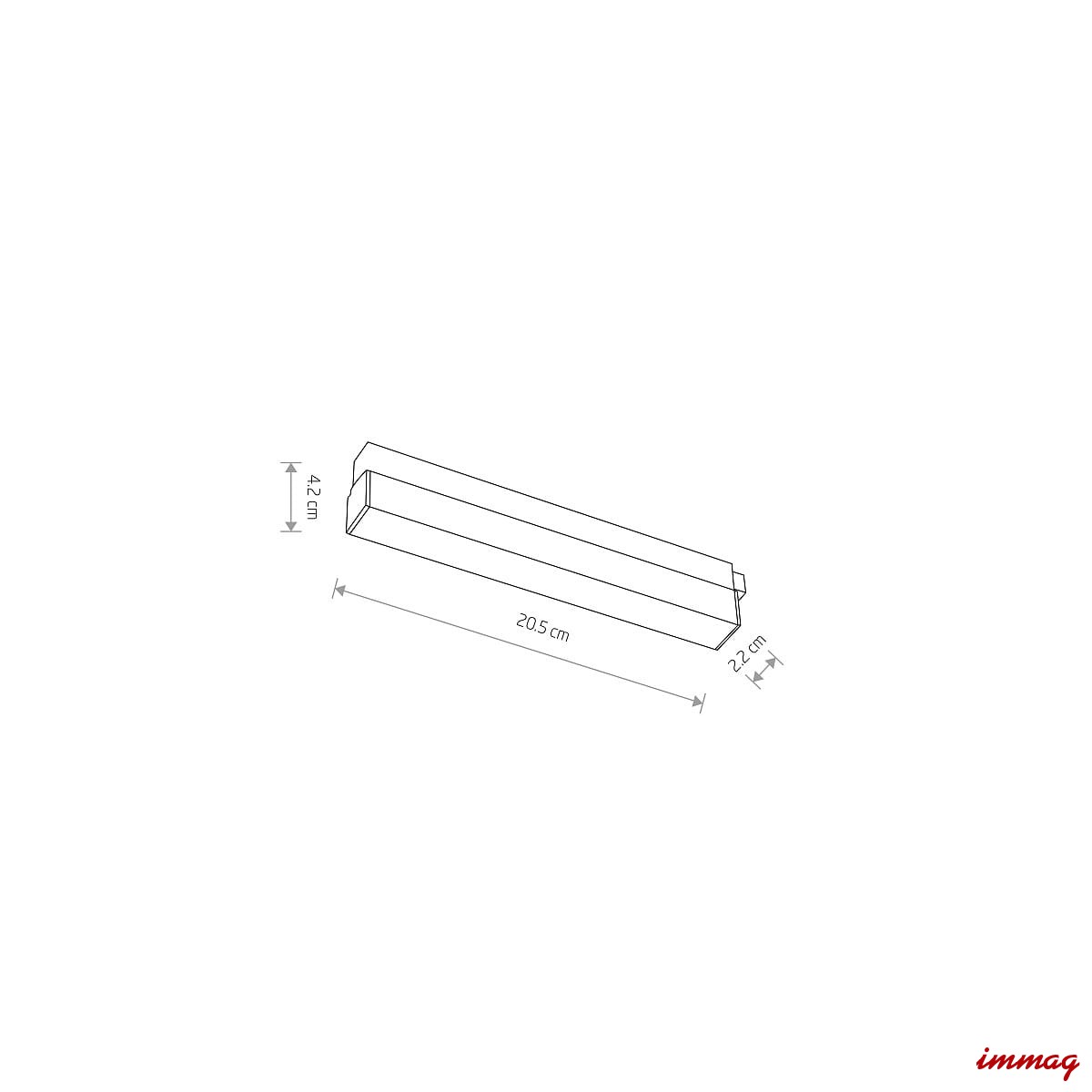 Wymiary: wysokość 4,2 cm, szerokość 2,2 cm, długość 20,5 cm
