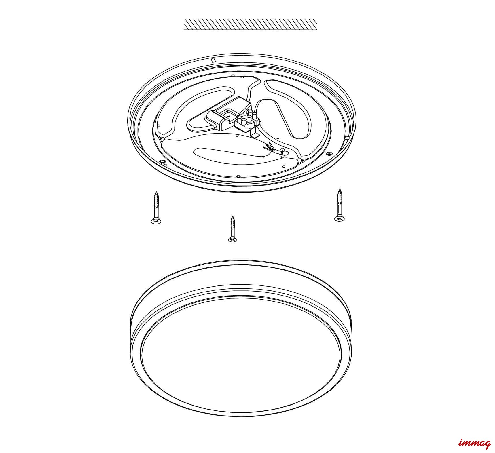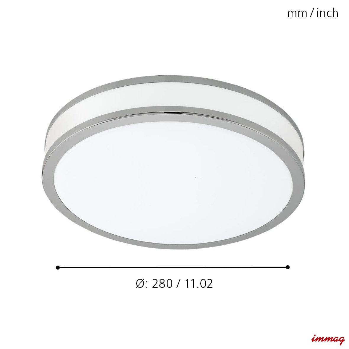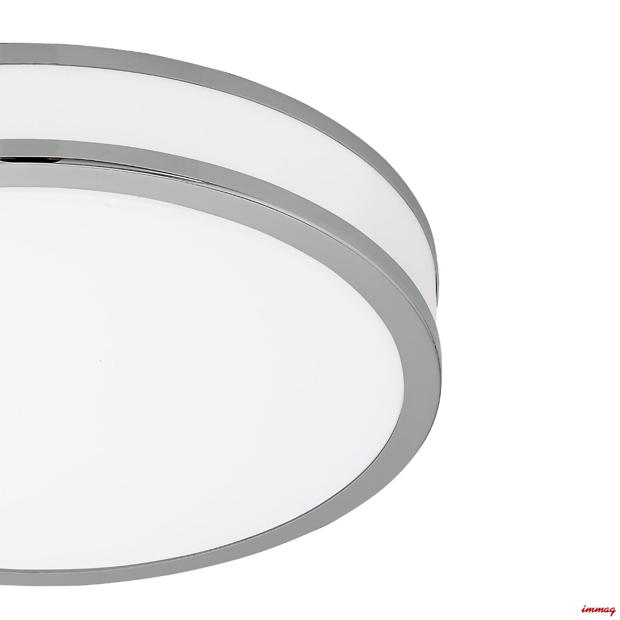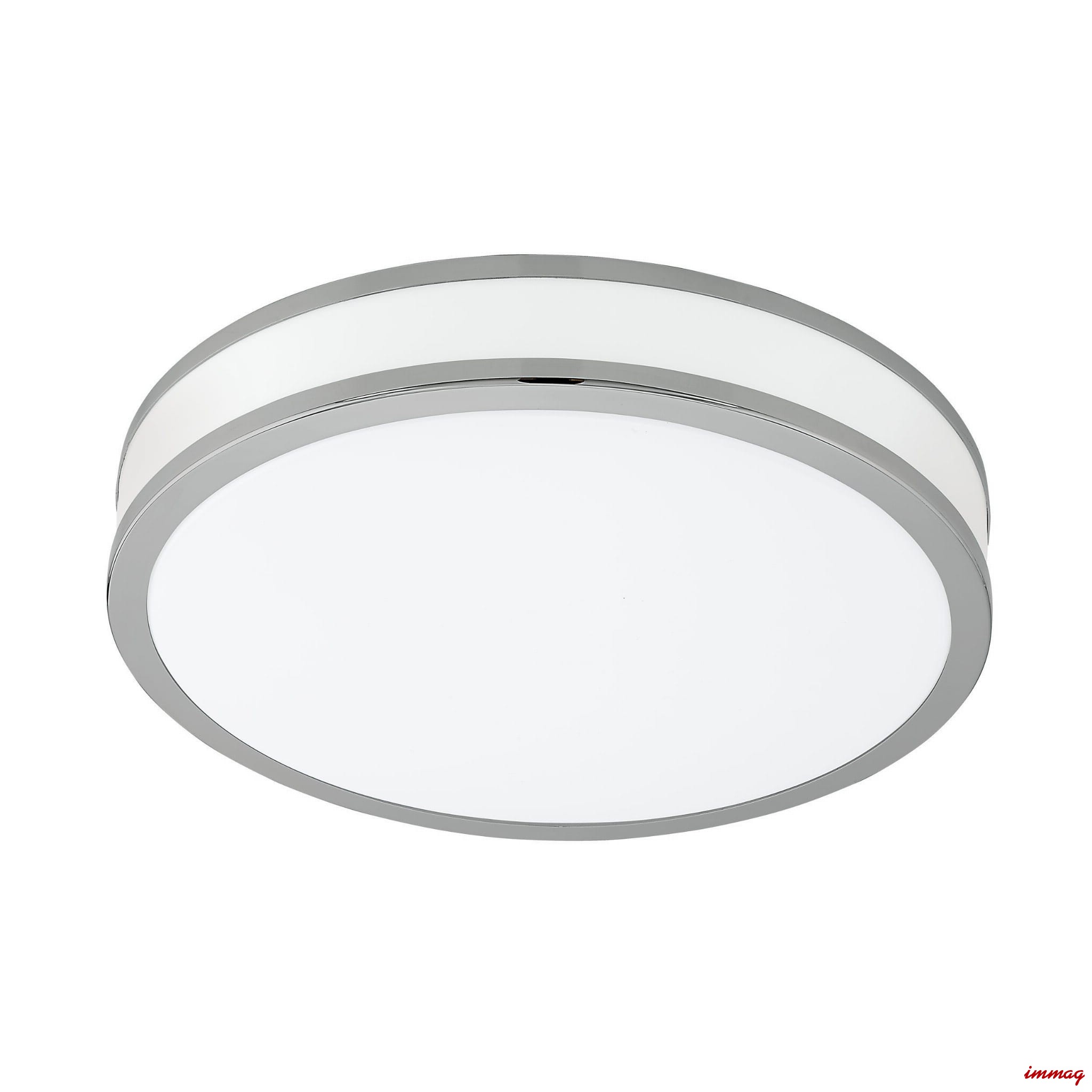 Prosta, delikatna lampa mocowana bezpośrednio na suficie lub ścianie. Główną zaleta oprawy jest ledowe źródło światła o przyjemnej dla oczu, ciepłej barwie 3000K. Lampa wykonana jest ze stalowej podstawy, na która nakłada się plastikowy klosz z metalowymi, chromowymi obręczami. Zastosowanie tworzywa gwarantuje równomierne rozproszenie światła na całej powierzchni.
