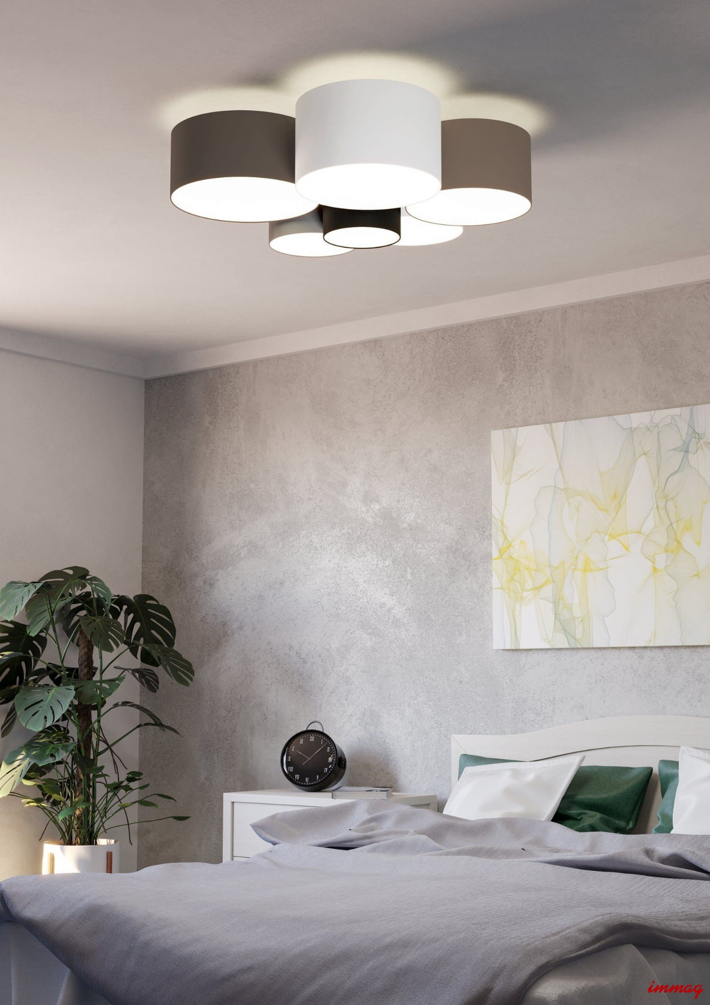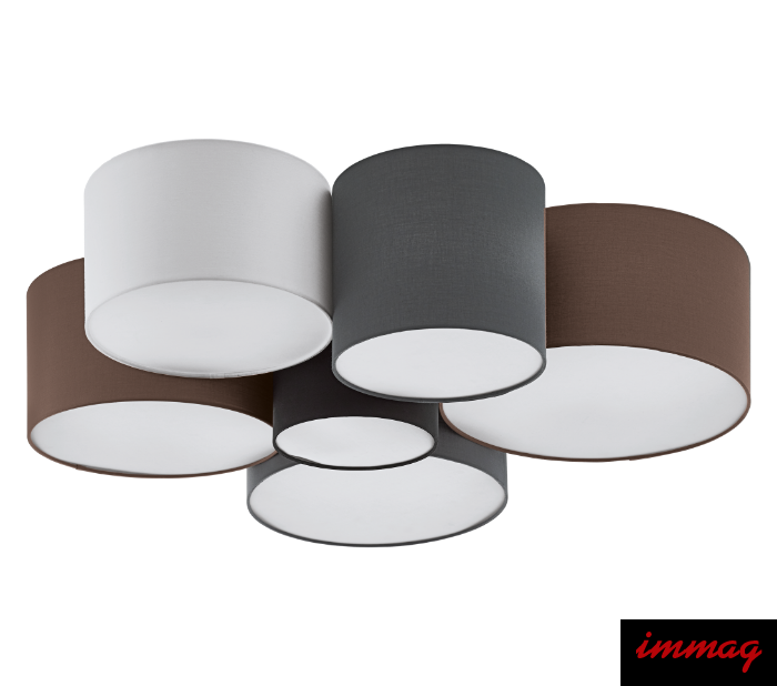 Efektowna i przykuwajace uwagę lampa sufitowa PASTORE to produkt austriackiej firmy EGLO. Jej prosta forma oraz zastosowanie tkaniny w różnych kolorach to ciekawy sposób na aranżację wnętrza. PASTORE to zestawione ze sobą abażury o różnych średnicach i wysokościach, które zapewniają przyjemny, ciepły nastrój, bez efektu oślepienia. Lampa dzięki zastosowaniu oprawek z wejściem E27 przystosowana jest na tradycyjne i oszczędne źródła światła.
