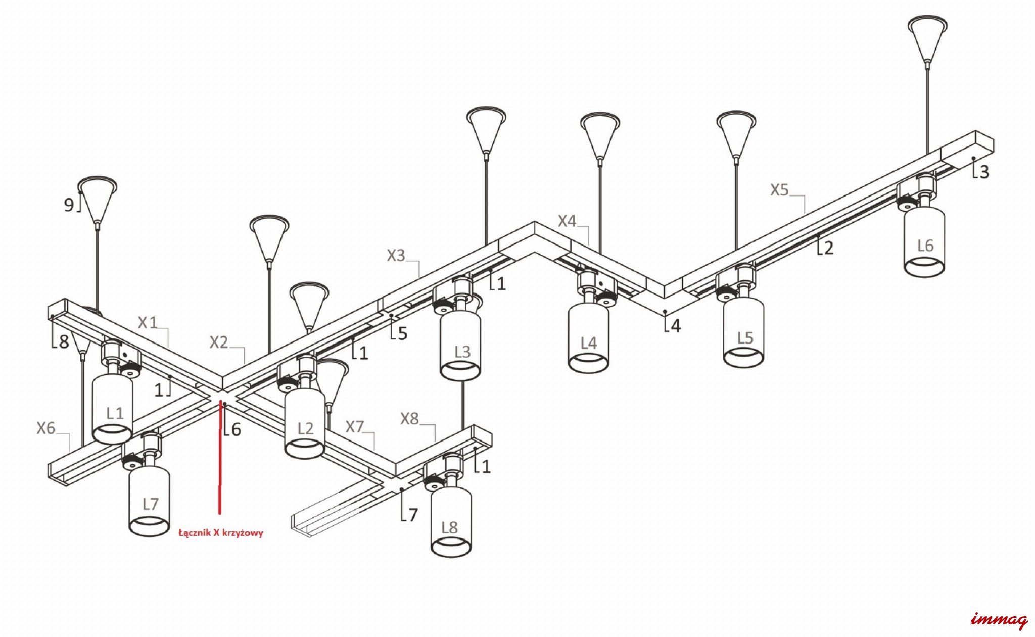 PROFILE X-CONNECTOR black 9188 łącznik X do szynoprzewodów czarny NOWODVORSKI