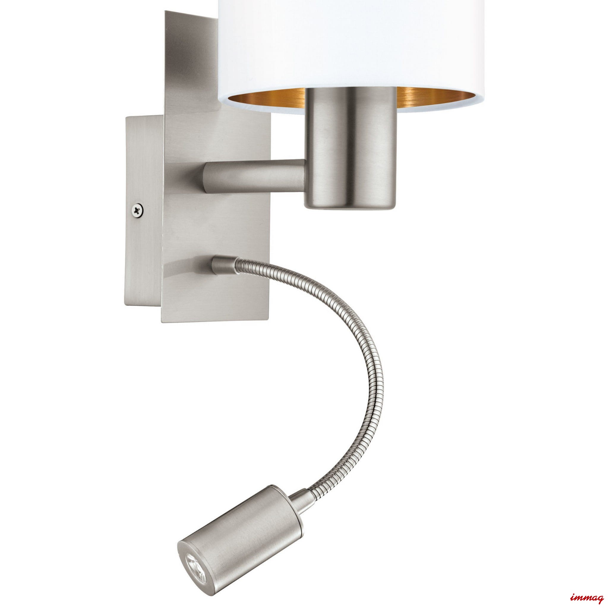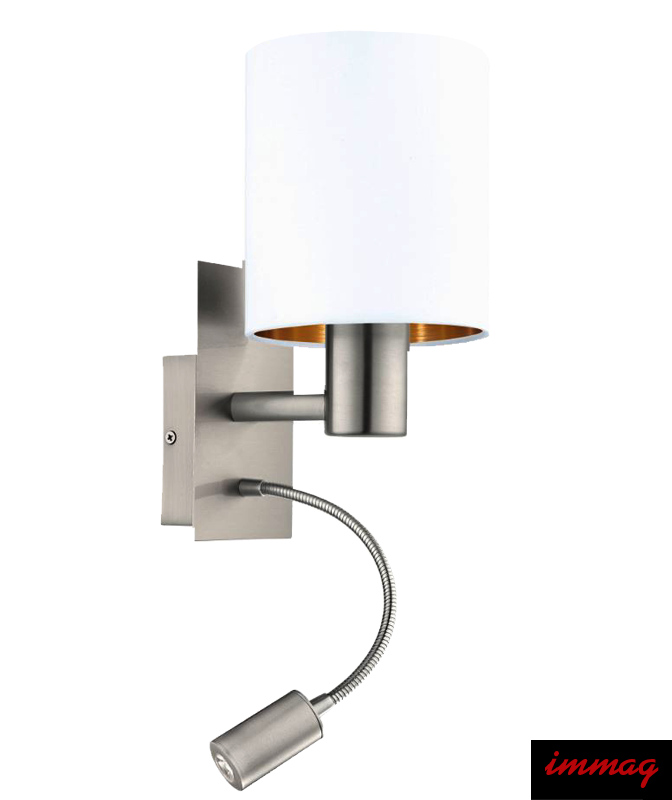 Kinkiet Pasteri to bardzo efektowna i praktyczna lampa, szczególnie polecana do pokoi sypialnianych. Lampa wyposażona jest w dwa niezależne wyłączniki, dzięki którym mamy możliwość decydowania o rodzaju światła w danym momencie. Przy korzystaniu z oświetlenia z abażurem światło przedostaje się przez tkaninę i delikatnie rozświetla całe wnętrze. Regulowana lampka led służy do typowo punktowego oświetlenie wybranej powierzchni lub przedmiotu i tym samym nie przeszkadza osobie leżącej obok.
