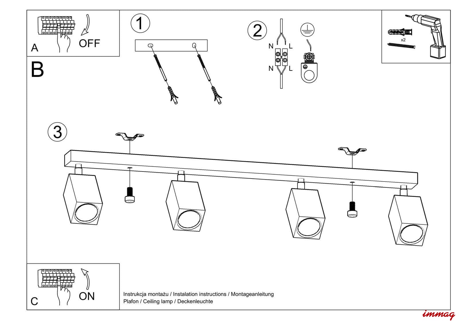 Źródło światła: 4 X led GU10 max 12W