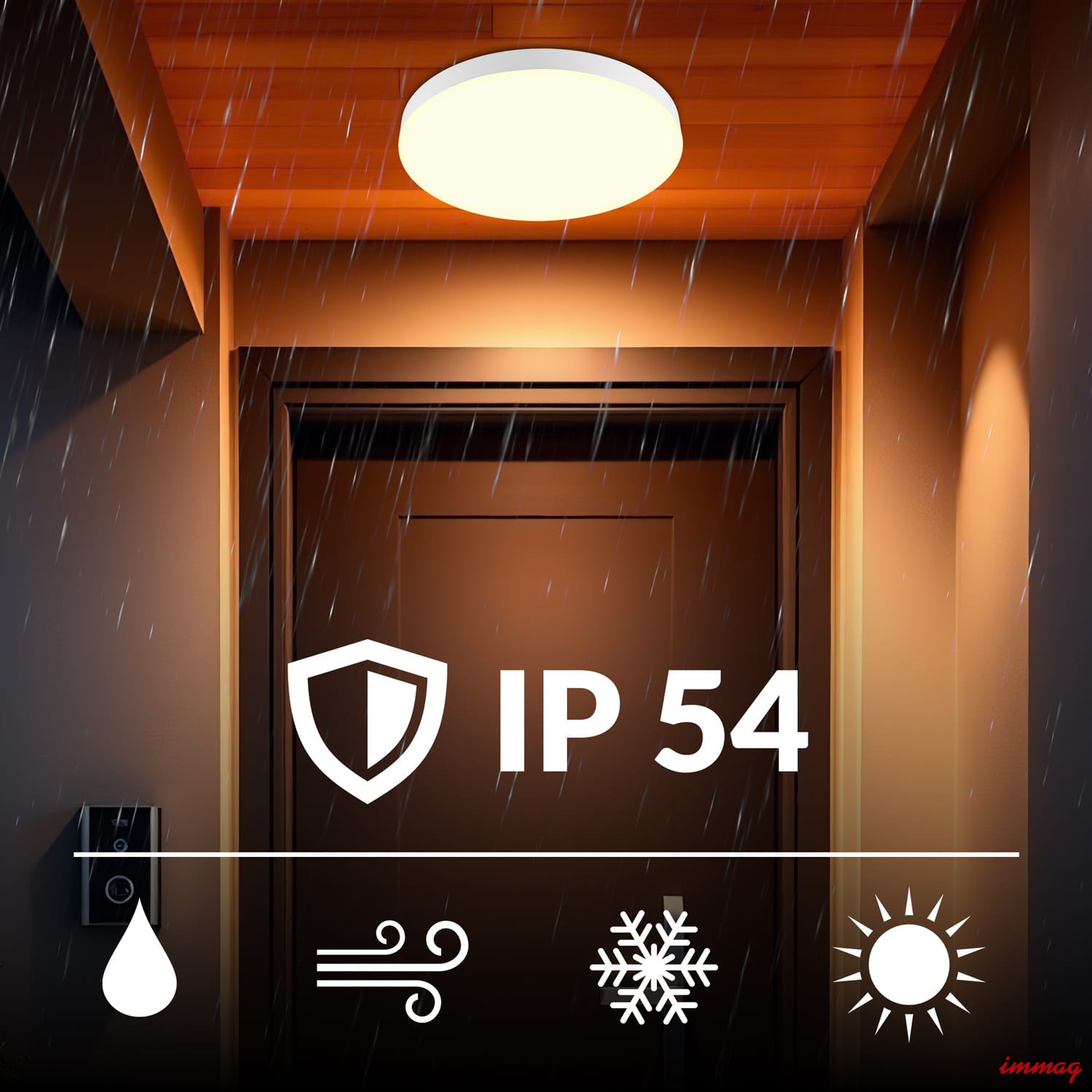Klasa szczelności IP54 – pewne i bezpieczne oświetlenie również w łazience, na balkonie czy przy drzwiach wejściowych.