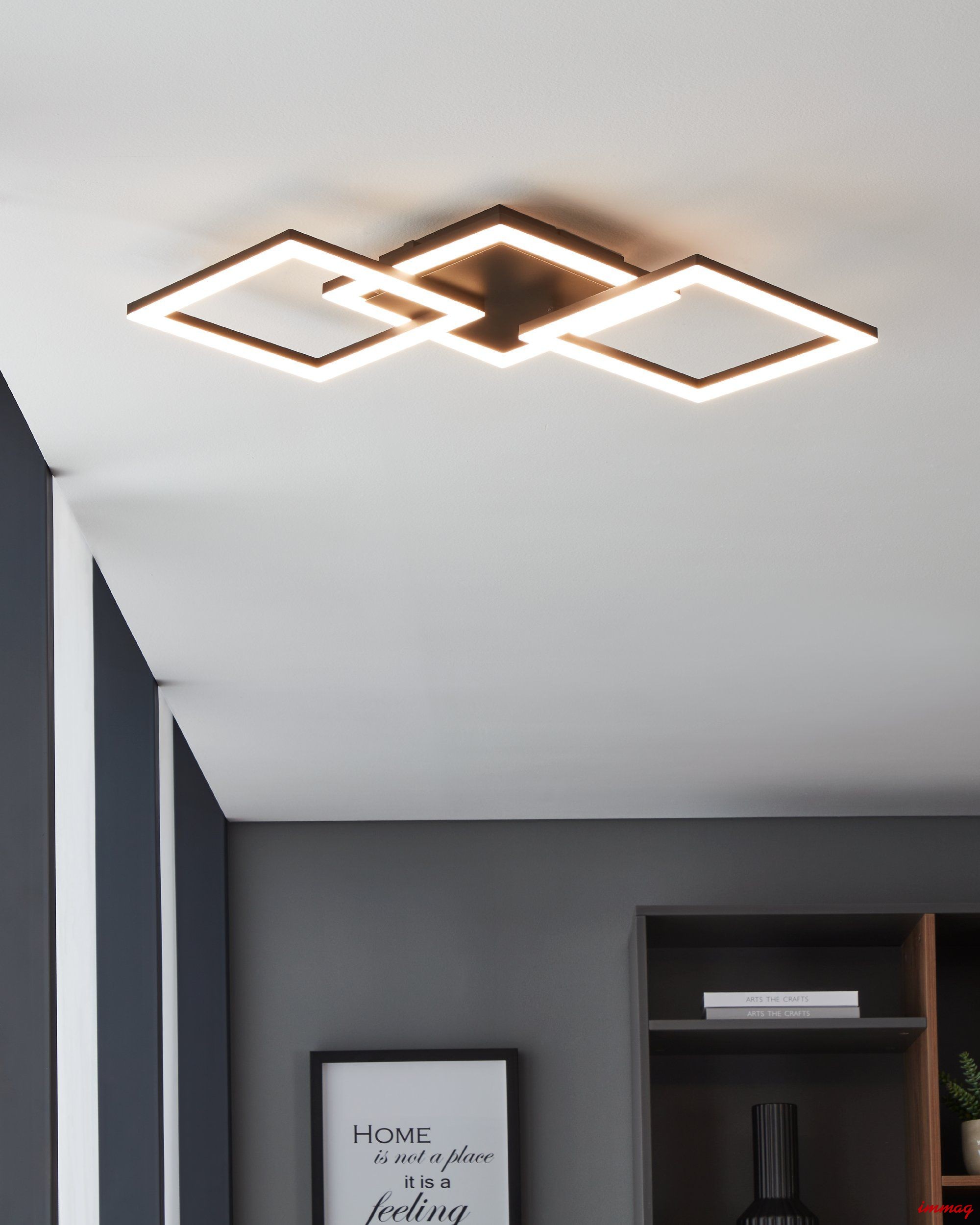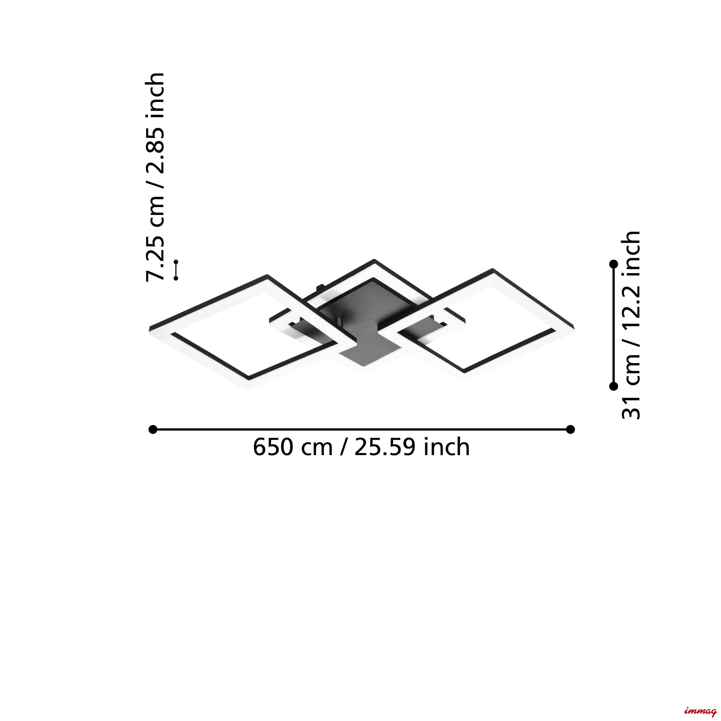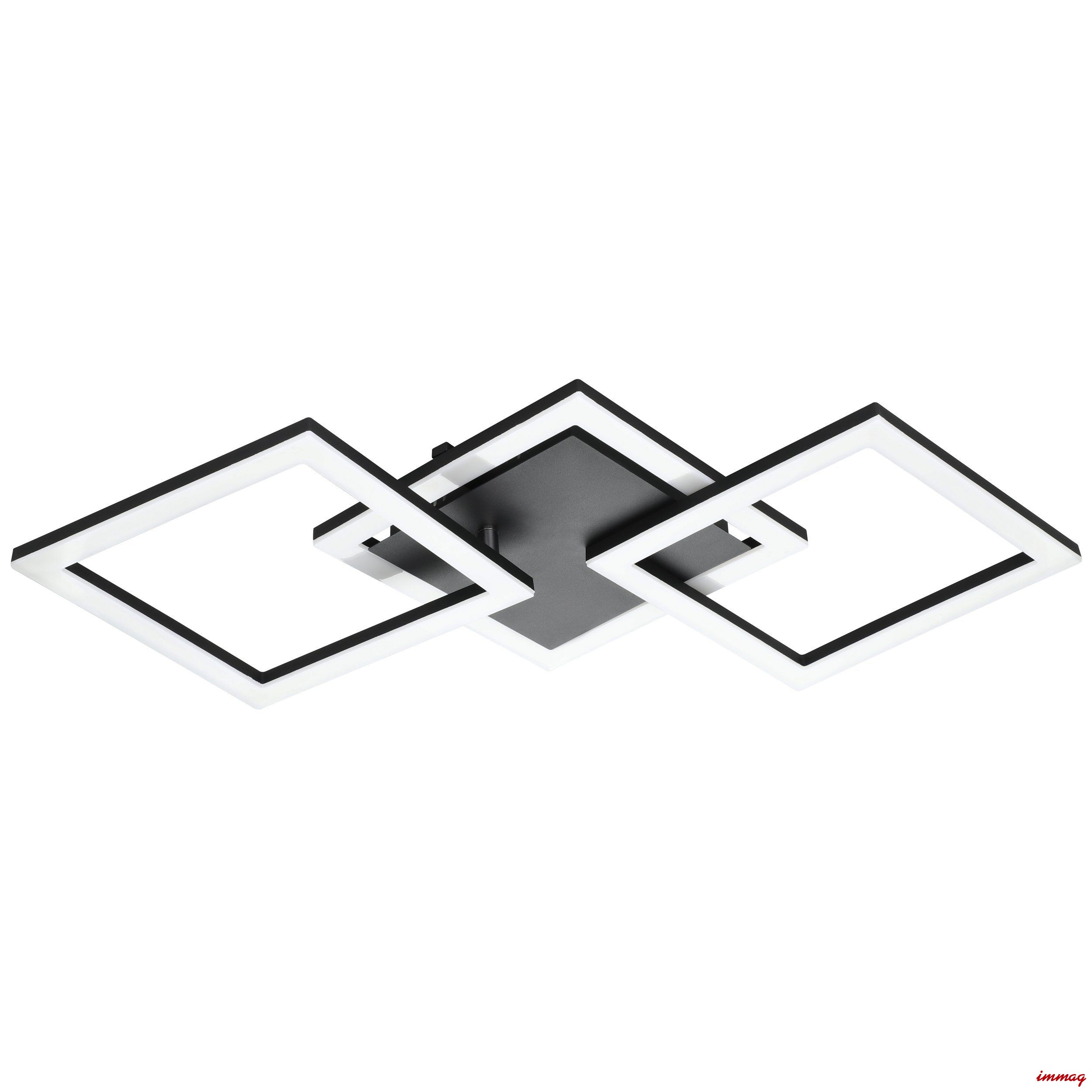 Plafon, lampa sufitowa LED PARANDAY-Z z serii smart home connect.Z jest wykonana z czarnego metalu i ma trzy kwadratowe elementy oświetleniowe. Dwa elementy zewnętrzne są regulowane, dzięki czemu można indywidualnie wpływać na optykę oprawy. Zintegrowane diody LED pod białymi plastikowymi osłonami zapewniają przyjemne światło zgodnie z Twoimi życzeniami. Masz wybór między ciepłą bielą, neutralną bielą i zimną bielą światła. Lampa sufitowa jest sterowana za pomocą bezpłatnej aplikacji (AwoX Home Control) i zapewnia dostęp do innych funkcji zwiększających komfort, takich jak ściemnianie, timer, symulacja obecności i wiele innych. Światło jest sterowane przez Bluetooth i ZigBee 3.0, a także umożliwia sterowanie za pomocą kompatybilnych asystentów językowych. Ponadto inteligentną lampą sufitową można sterować za pomocą dostępnego oddzielnie pilota kod 99099. Dzięki minimalistycznemu wzornictwu oferuje nowoczesne oświetlenie do każdego pomieszczenia – czy to w kuchni, salonie, sypialni, przedpokoju czy jadalni.