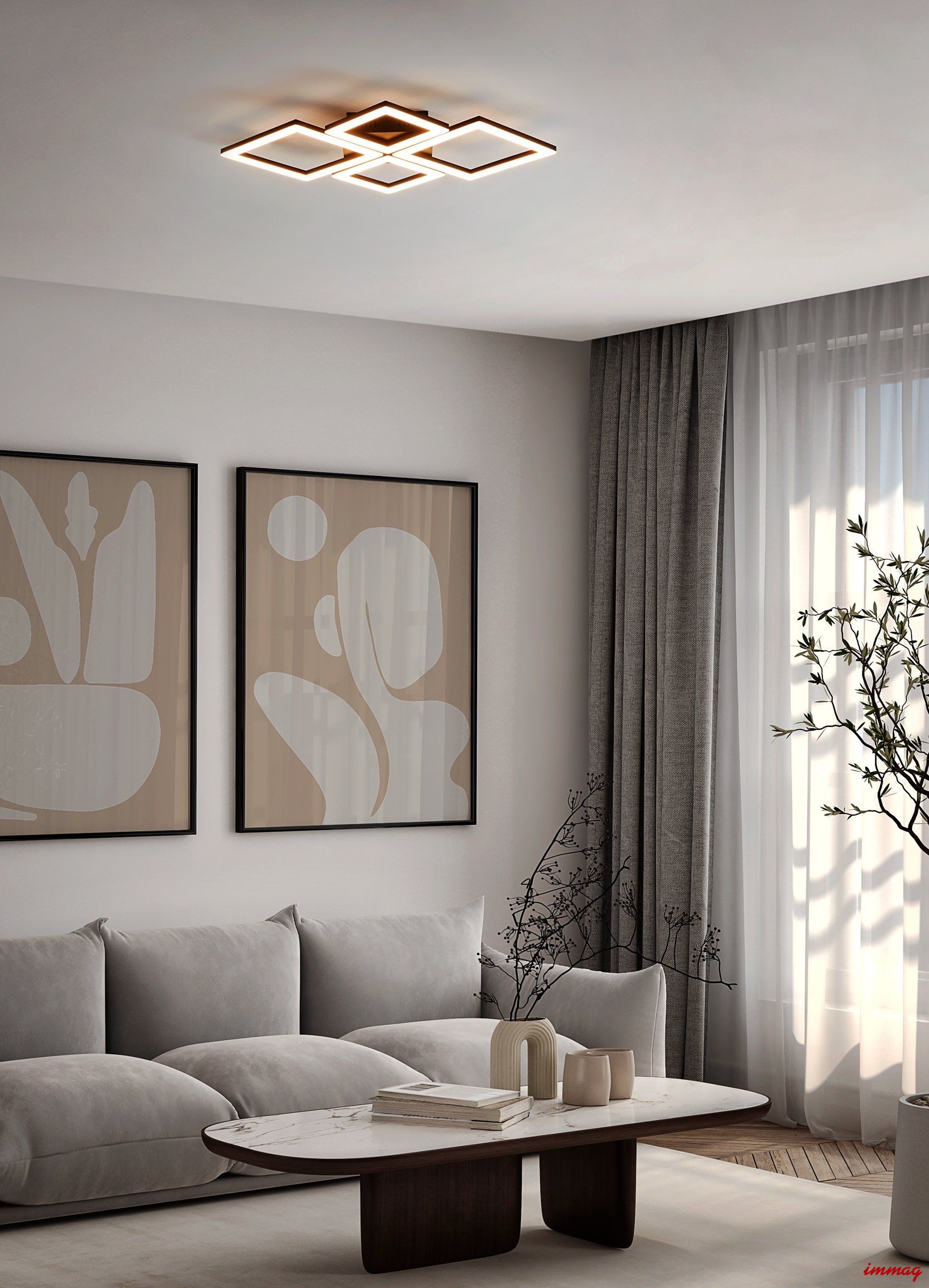 Lampa sufitowa LED PARANDAY-Z z serii smart home connect.Z jest wykonana z czarnego metalu z dwoma dużymi i dwoma mniejszymi kwadratowymi elementami oświetleniowymi. Zintegrowane diody LED pod białymi plastikowymi osłonami zapewniają przyjemne światło zgodnie z Twoimi życzeniami. Masz wybór między ciepłą bielą, neutralną bielą i zimną bielą światła. Lampa sufitowa jest sterowana za pomocą bezpłatnej aplikacji (AwoX Home Control) i zapewnia dostęp do innych funkcji zwiększających komfort, takich jak ściemnianie, timer, symulacja obecności i wiele innych. Światło jest sterowane przez Bluetooth i ZigBee 3.0, a także umożliwia sterowanie za pomocą kompatybilnych asystentów językowych. Ponadto inteligentną lampą sufitową można sterować za pomocą dostępnego oddzielnie pilota kod 99099.