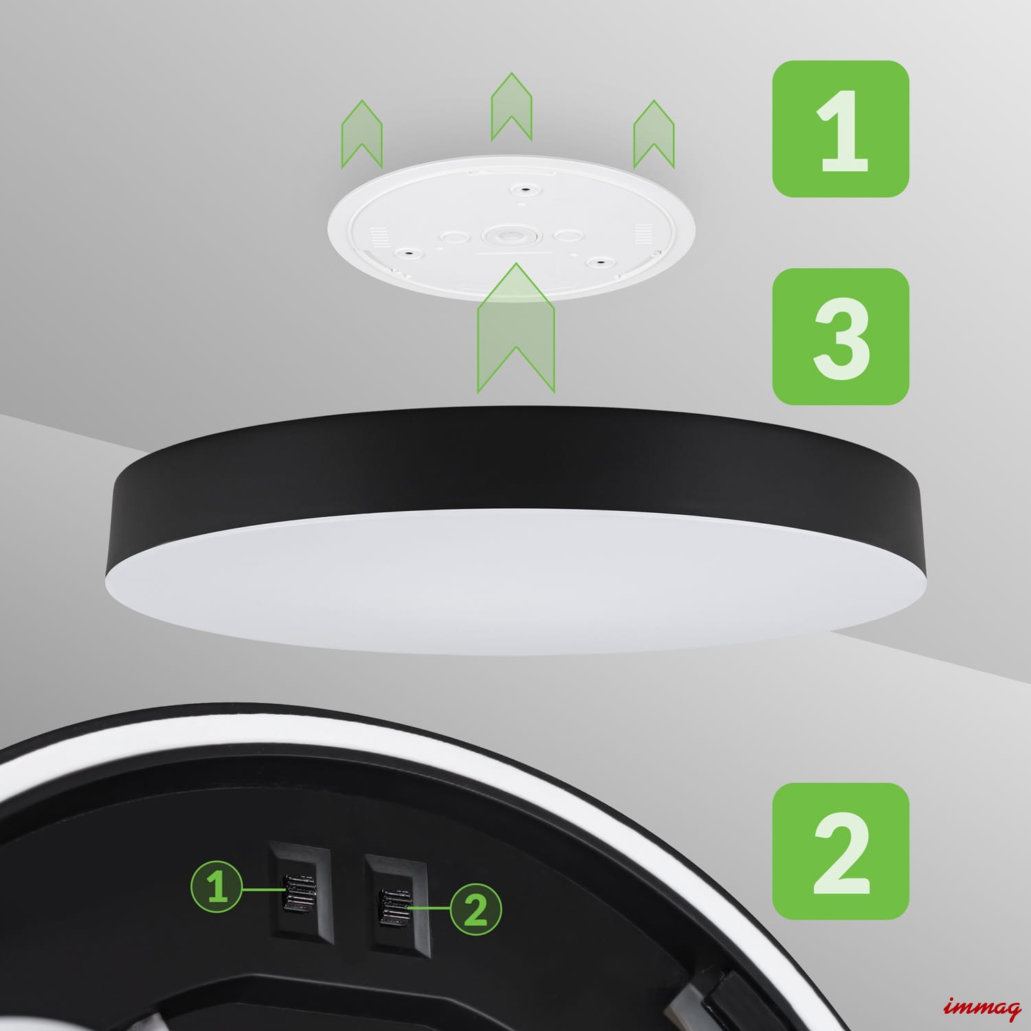 Plafon sufitowy LED okrągły czarny 3 barwy światła 3 poziomy jasności 50cm IP54