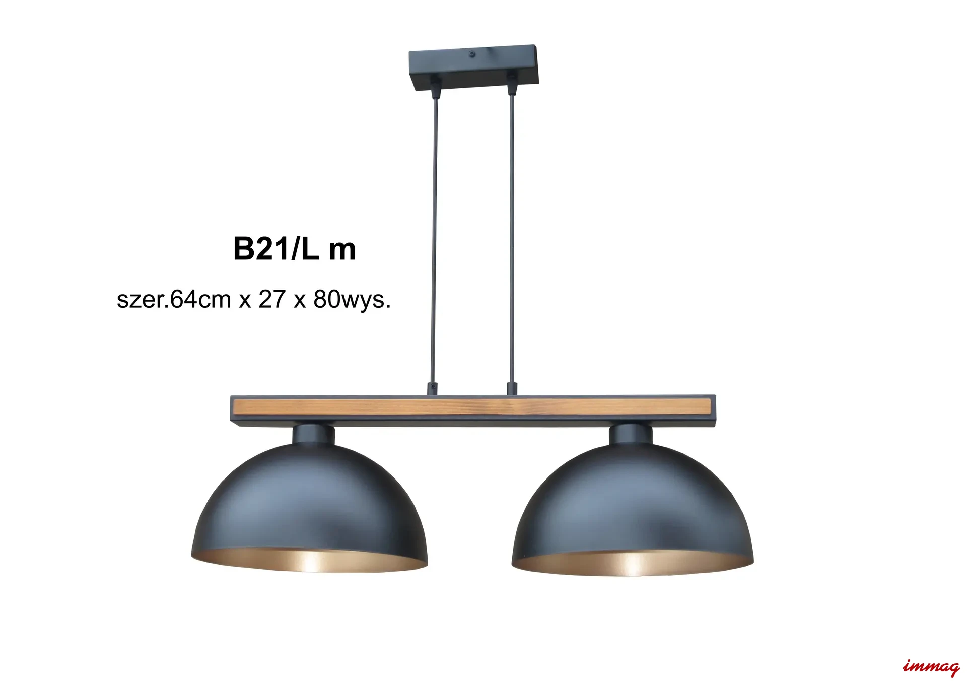 Podwójna lampa metalowa z dodatkiem drewna B21/L m