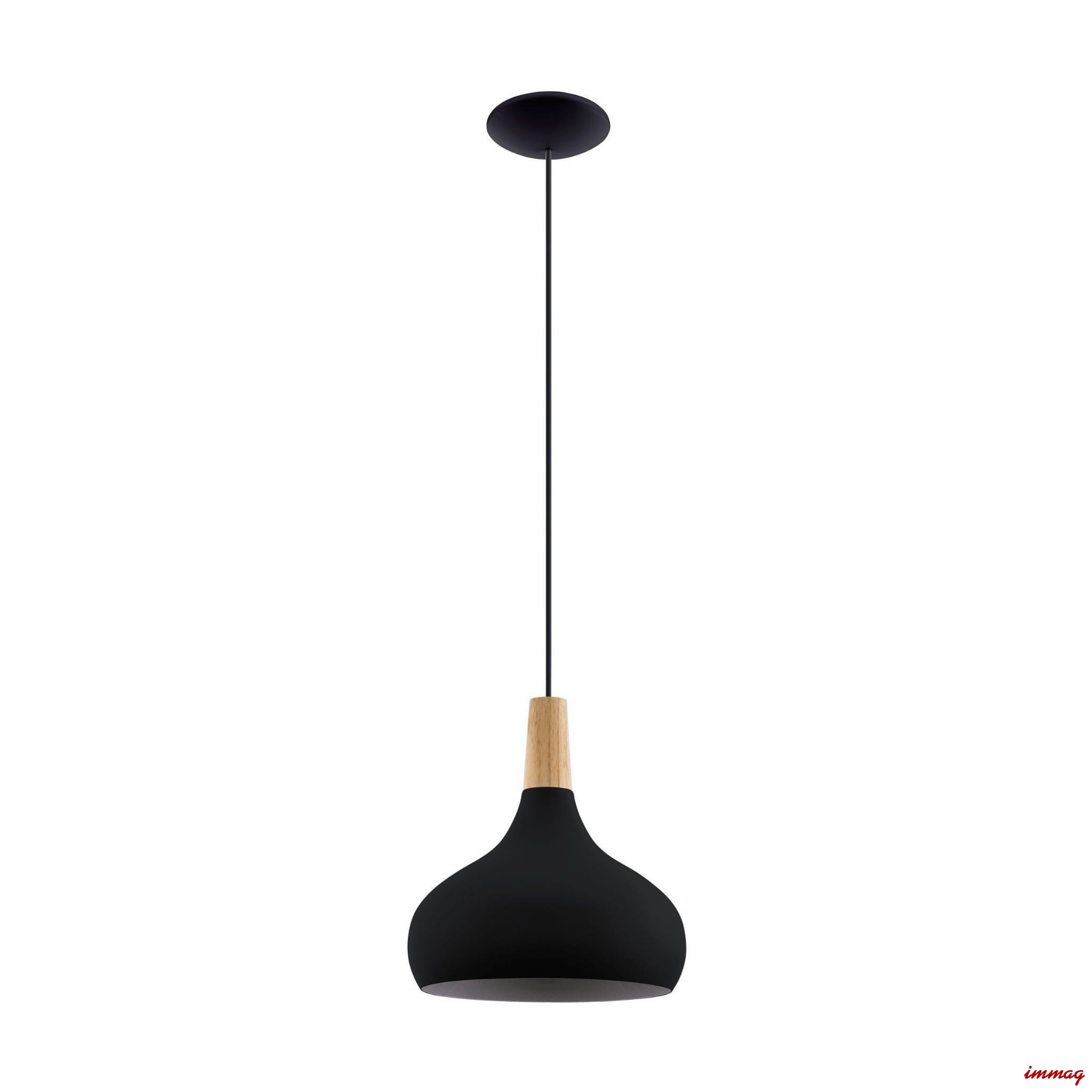 Pojedyńcza czarna lampa wisząca z drewnem 900162 Sabinar