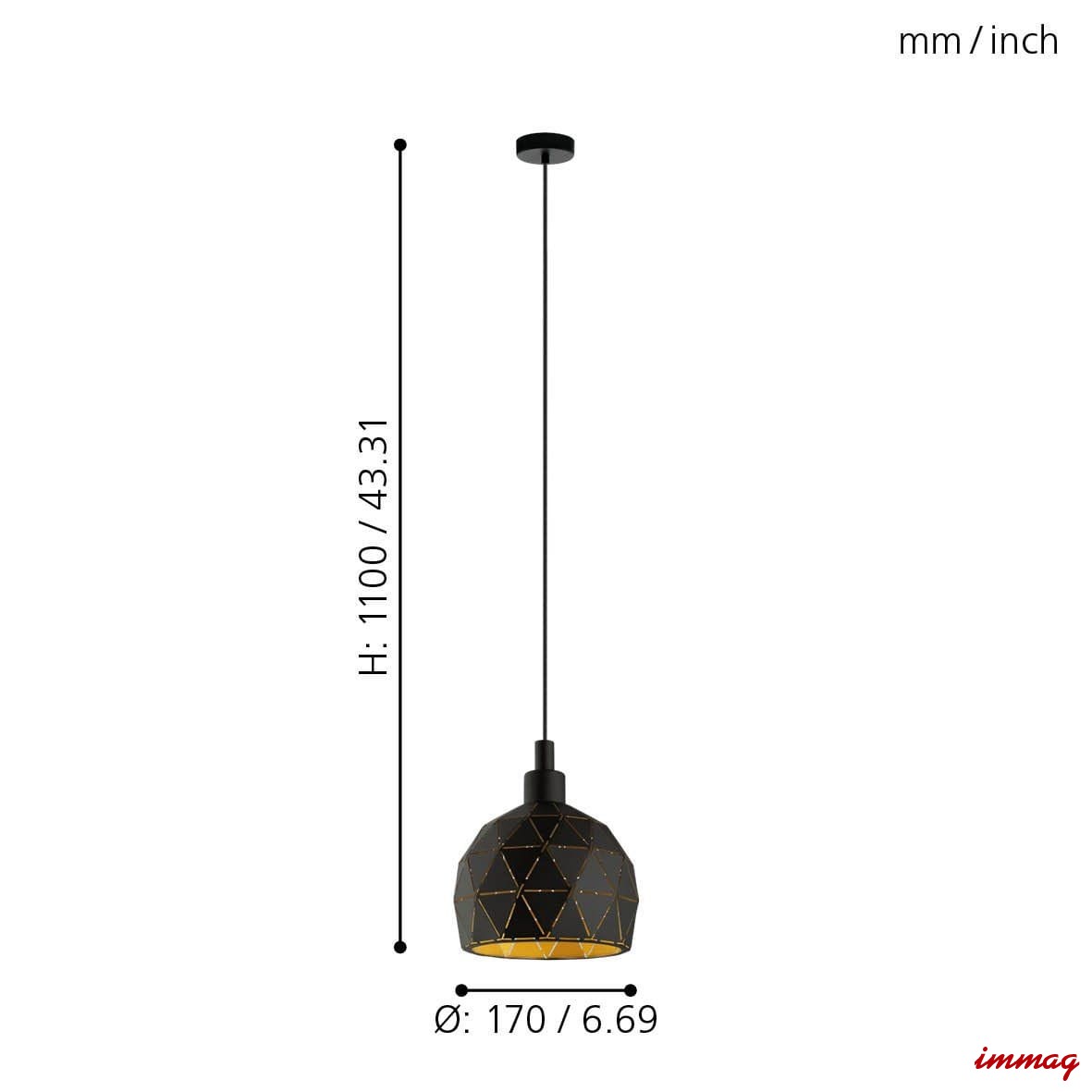 ROCCAFORTE 33345 lampa wisząca czarno-złota EGLO